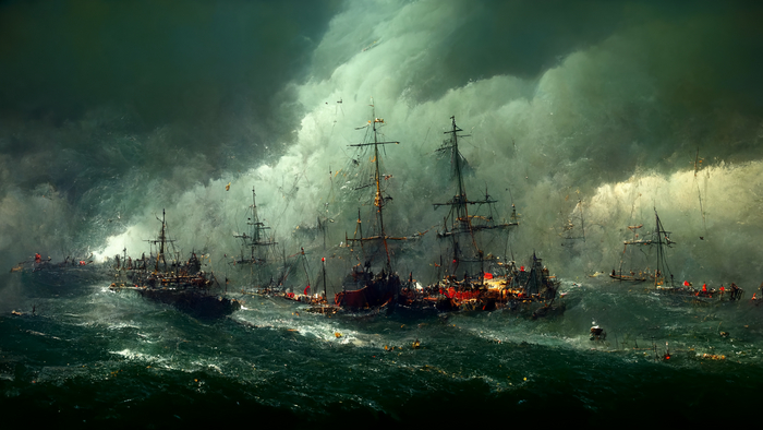Для этих картин в запрос надо добавить "naval battle at storm".
