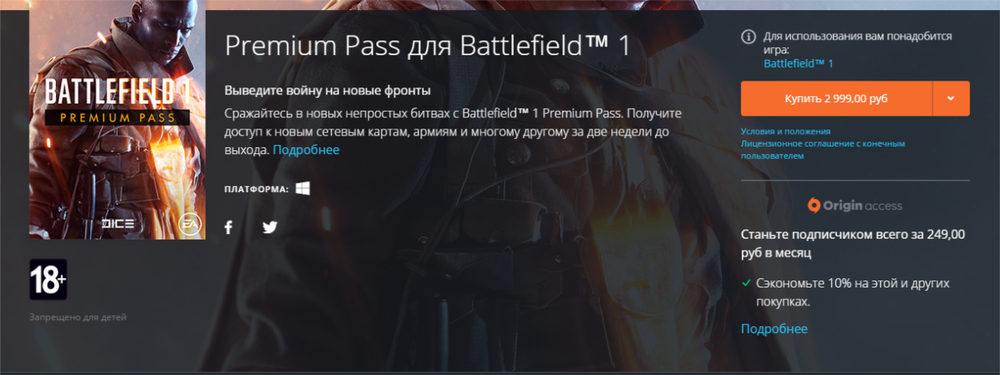 Уже несколько дней планировал приобрести БФ1, сегодня таки дошли руки и тут я вижу в магазине на своей учетной записи купленный premium pass к слову я совсем ничего у этих ребят не покупал, зарегистрировал учетную запись недавно с целью забрать пару халявных игр и ближе к середине года бф1, но финансы позволили раньше.