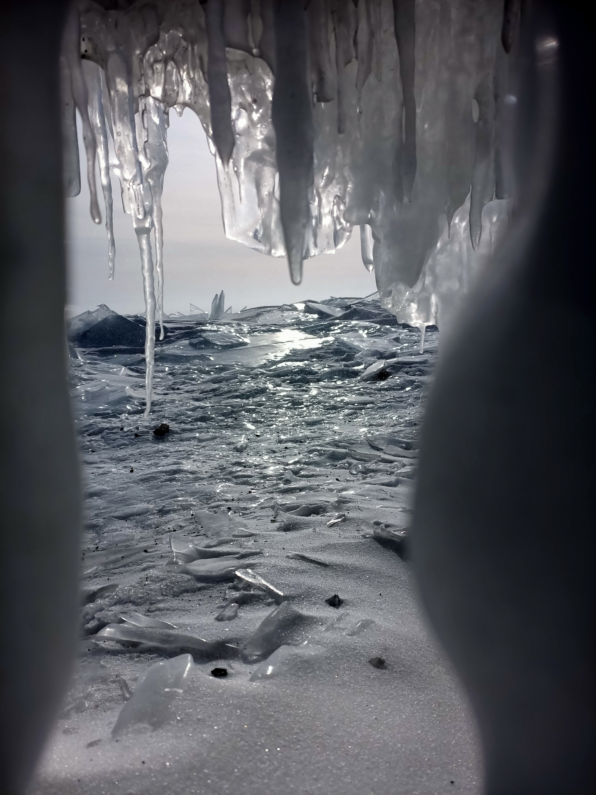 Спустился снова на лед, пошел дальше. Увидел одну любопытную пещерку. Видео с неё: