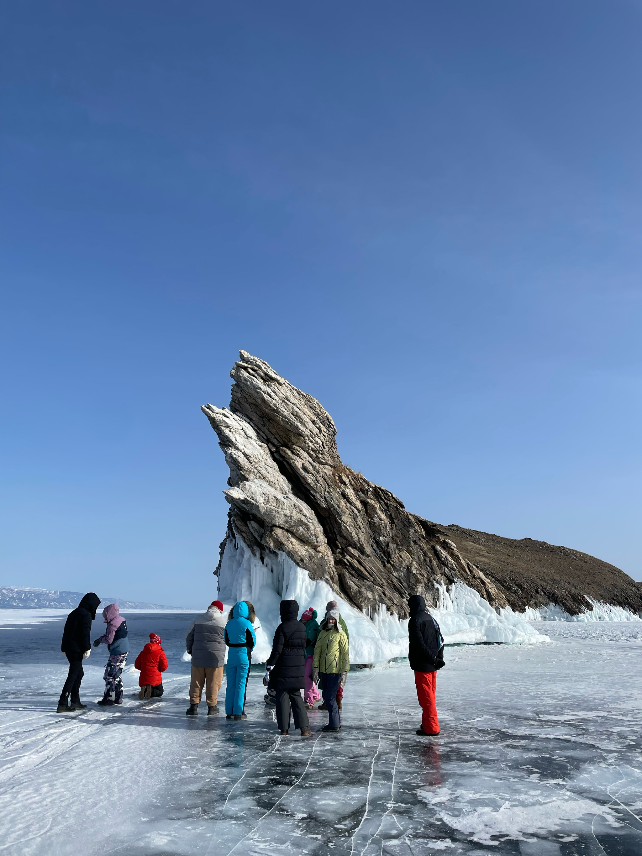Места там инстаграмные, контента надолго хватит). Перевозка идет микроавтобусами, до Байкала трасса, дорога хорошая, потом официальная ледовая переправа километров 20 и по грунтовке до Хужира - все вместе часов 6 с остановкой на обед.