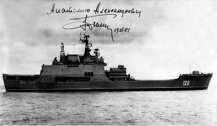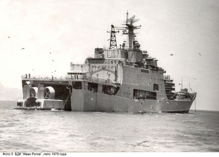 Вошедший в боевой состав флота БДК «Иван Рогов» с 27 февраля по 3 июля 1979 г. совместно с тяжелым авианесущим крейсером «Минск» (проект 1143) совершил переход вокруг Европы и Африки во Владивосток. Во время перехода были осуществлены деловые заходы в Луанду (Ангола), Мапуту (Мозамбик), Порт-Луи (Маврикий) и Аден (Народная Демократическая Республика Йемен-НДРЙ).