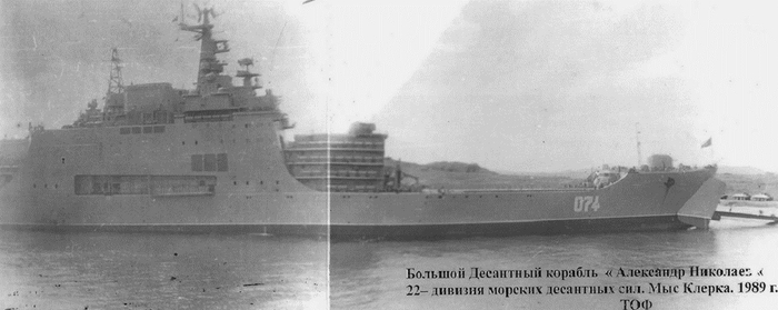 Второй БДК проекта 1174, «Александр Николаев» (заводской номер 102), был заложен на стапеле калининградского судостроительного завода в марте 1976 г. и вошел в боевой состав ВМФ СССР в конце 1982 г. Корабль также направили на Дальний Восток.
