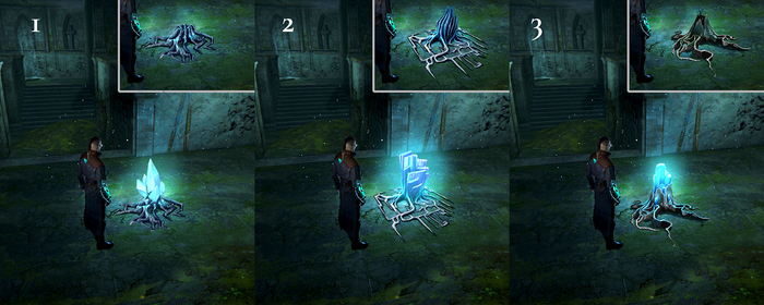 Кристаллы разбросаны по всей карте. Во время игры вам нужно их найти и взорвать, чтобы затем, идя по следам от места детонации, собрать осколки Арканы. Именно Аркана делает вас сильнее и позволяет открывать способности!