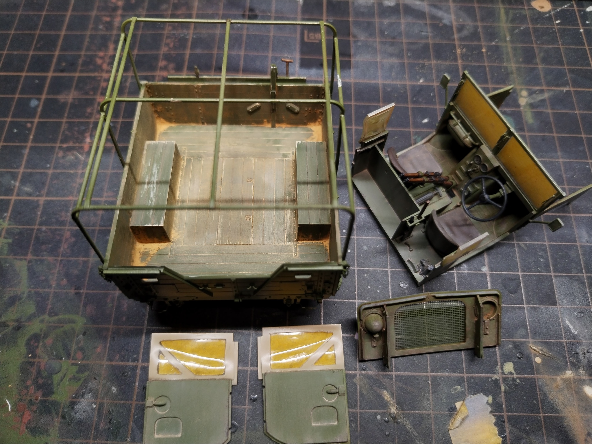 Отдельно окрасил раму с двигателем и интерьеры кабины и кузова, перед проведением финальной стыковки
