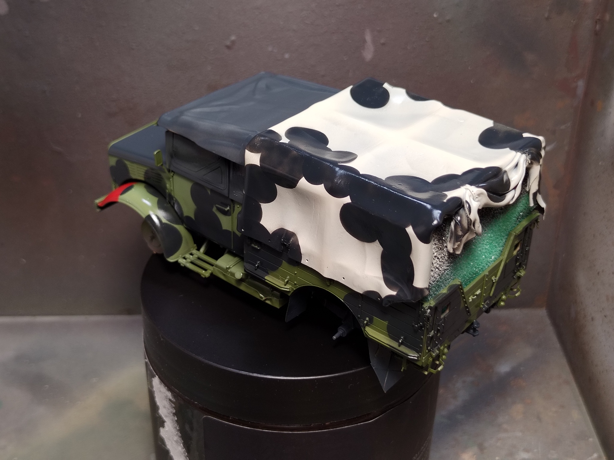 В качестве основной фишки решил сделать тент из двухкомпонентной шпатлевки. Родной не очень понравился, плюс его надо было клеить из 3-х деталей, а это швы и прочее. Ну и сделать чуть износа на самолепном тенте гораздо проще. В качестве шпатлевки выбрал Border, в целом она вполне себе удобна в работе, но имеет склонность к тресканью даже когда не затвердела.
