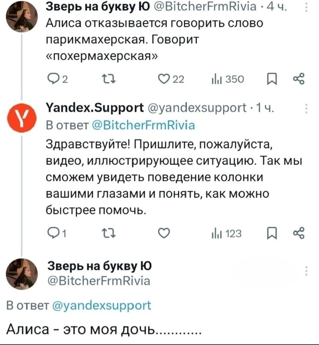 6114 TvoeNastroenie Бедная Алиса... 3 месяца назад Мемы Яндекс Алиса Юмор Чат Ошибка Скриншот Комментарии X (Twitter) 739 41 9 6 1 1 1 Ещё 2