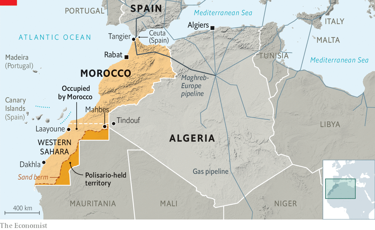 Западная Сахара (официально - Сахарская Арабская Демократическая Республика), бывшая до семидесятых годов колонией Испании, с самого ухода мадридской администрации находится в войне с Марокко, которое претендует на весь регион. Фактически, фронт ПОЛИСАРИО, отстаивающий независимость Западной Сахары, контролирует лишь отдельные пустынные земли, и существует во многом только благодаря поддержке от соперника Марокко за региональное господство - Алжира.