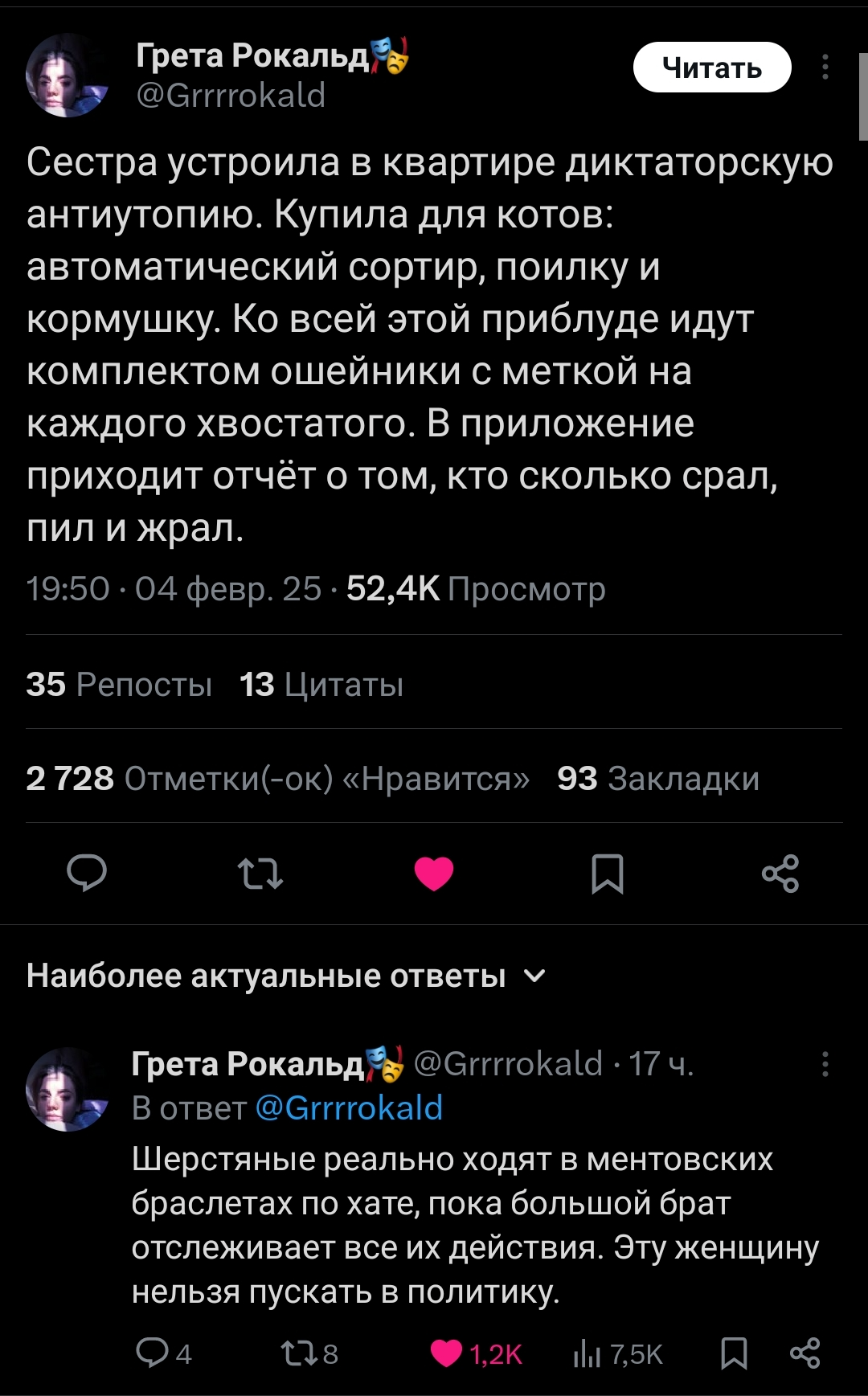 3496 AnalnayaProbka Животные Бедные котики 1 год назад X (Twitter) Кот Животные RFID Диктатура Цифровой концлагерь Контроль 124 8 5 3 1 Ещё 0