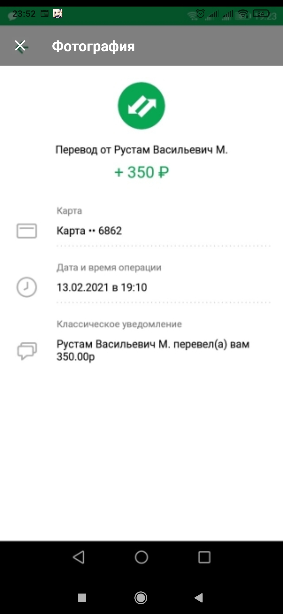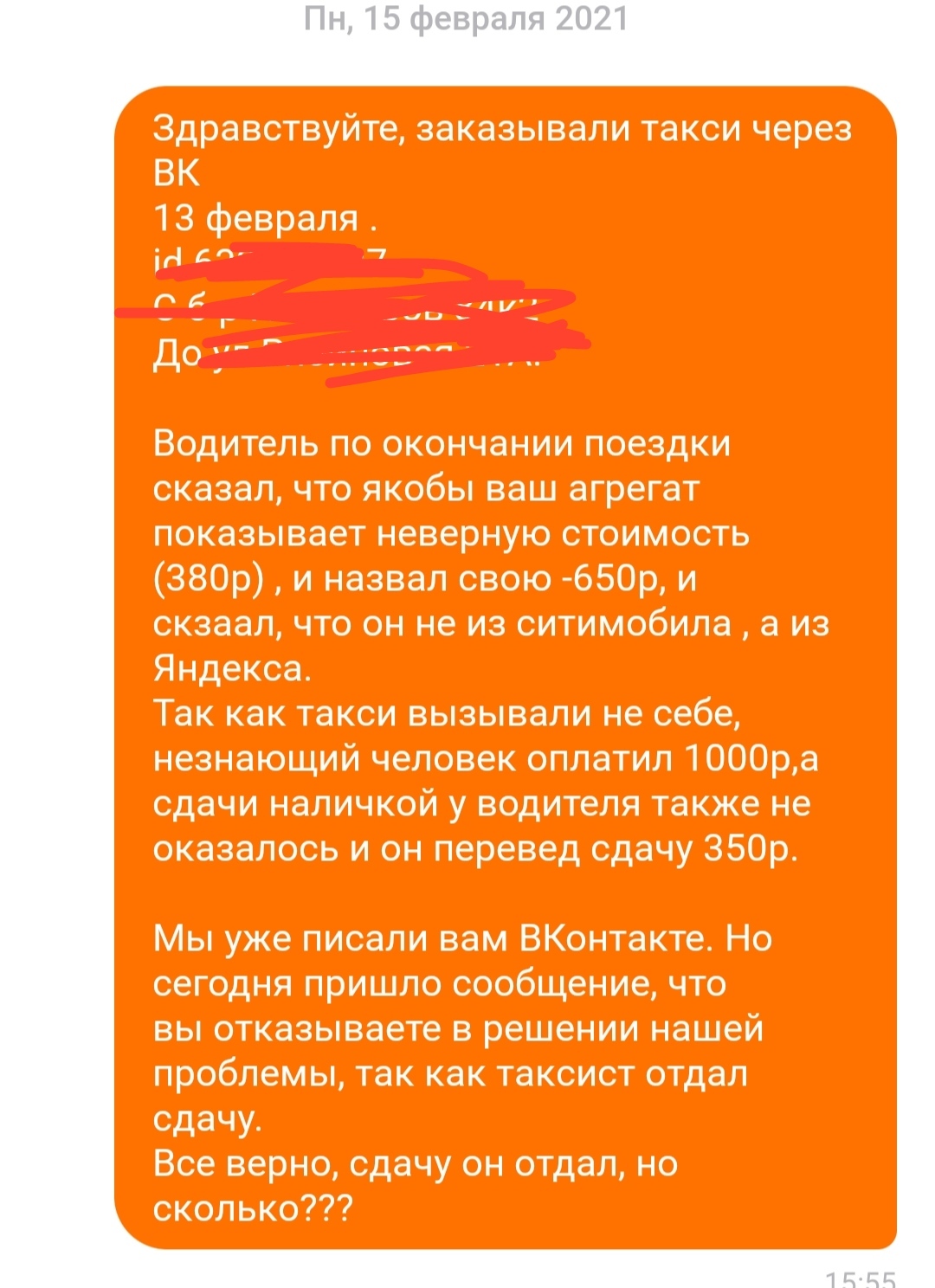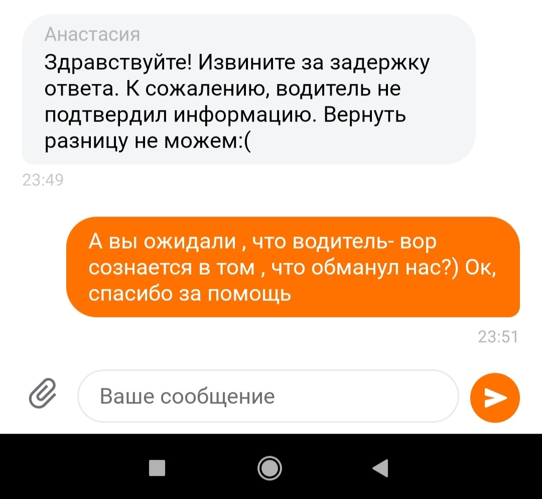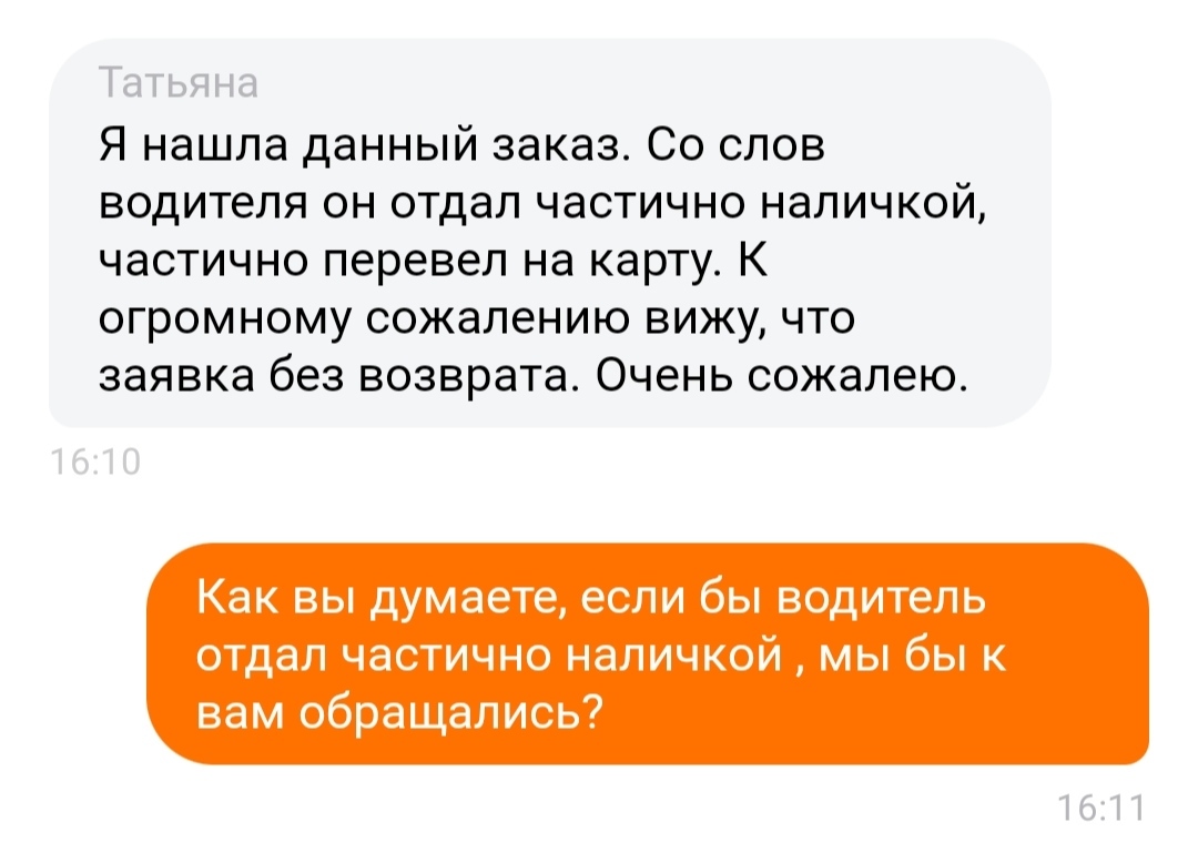 Спустя минут 30 звонит мама и говорит, что у водителя сдачи с 1000 не было наличкой, мол, он перевел на карту.