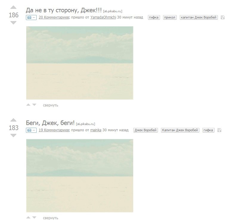 кто нибудь объяснит для чего выложили бегущего КАПИТАНА Джека воробья, а потом его же, но бегущего в другую сторону?