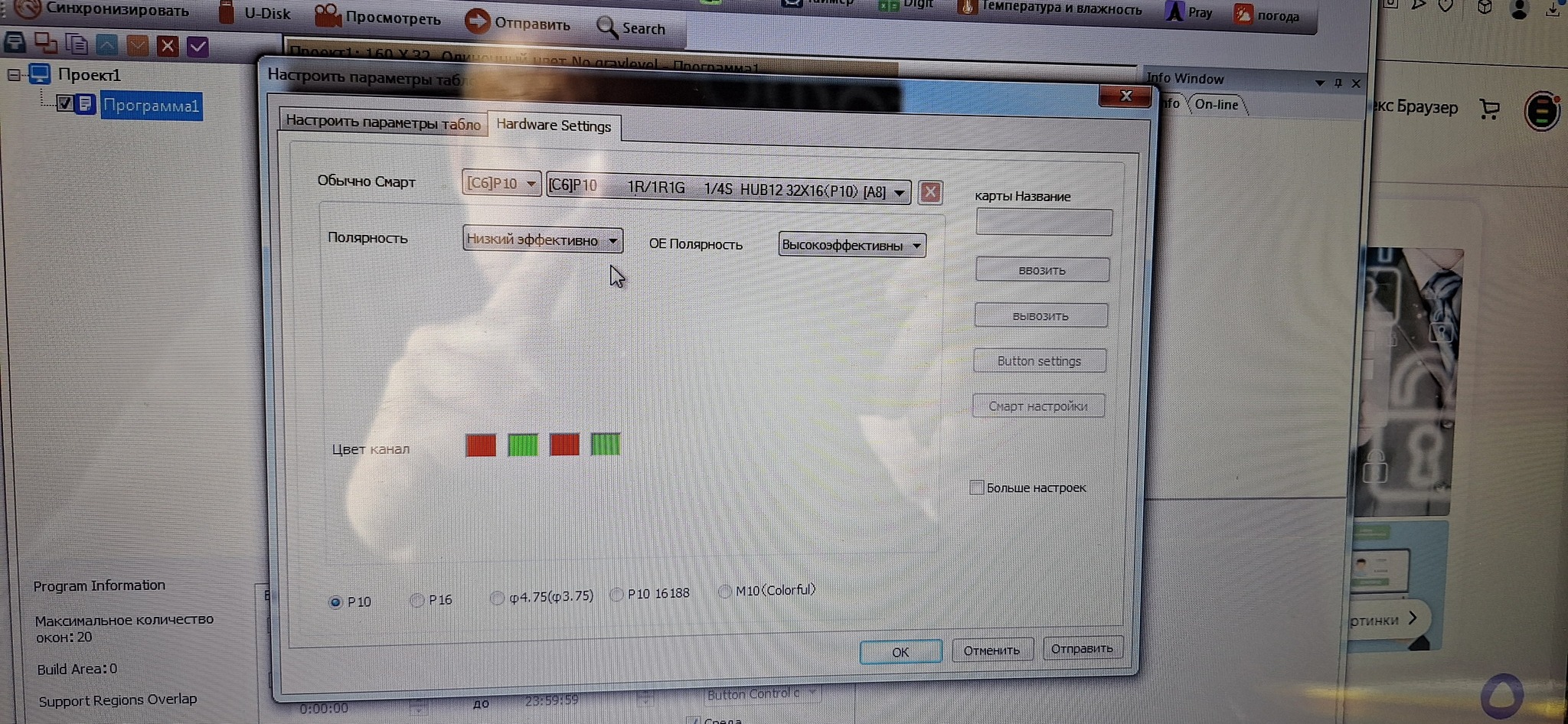 Скачал программу HD 2018 написал свою информацию, выбрал модель карты, далее выбрал p10 модуль 320х160... а показывает ерунду, артифакты какие-то...