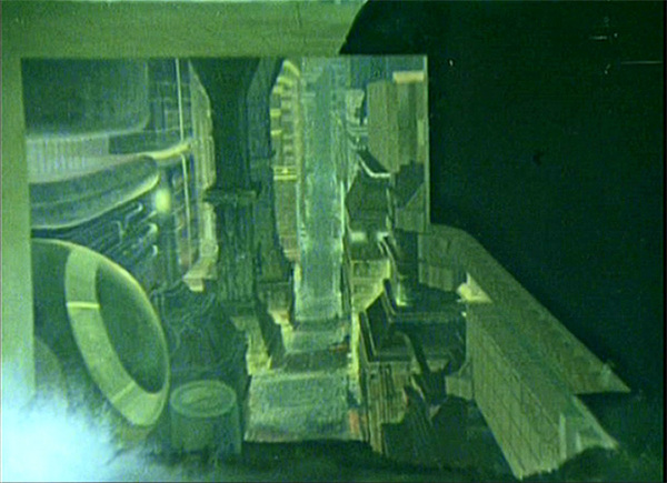 Кстати, matte по-английски «трафарет» или «маска». Cама технология получила такое название потому, что на такой картине обычно остается пустое (как правило, черное) пространство или пятно, куда потом, как в трафаретную дырку, вставляется то, что снято в другом месте. Например, так выглядит рабочий вариант городской пейзажа из фильма:
