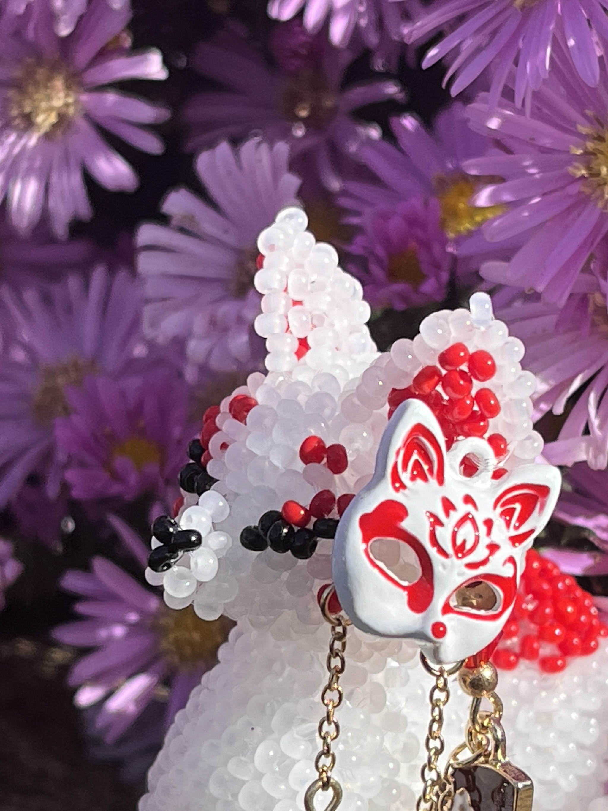 Материалы: чешский бисер, подвеска маска, внутри игрушки наполнитель, леска. Ручная работа