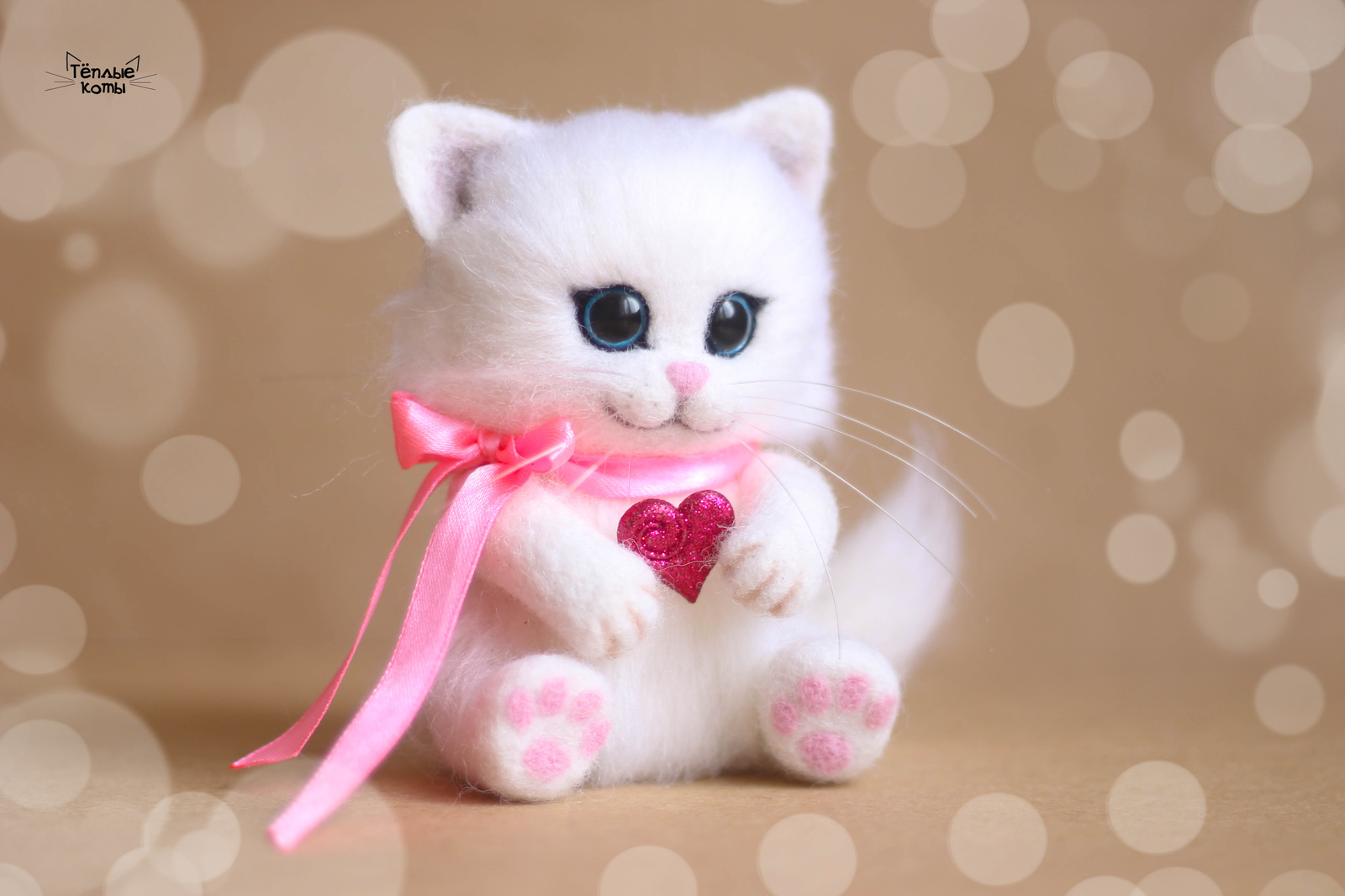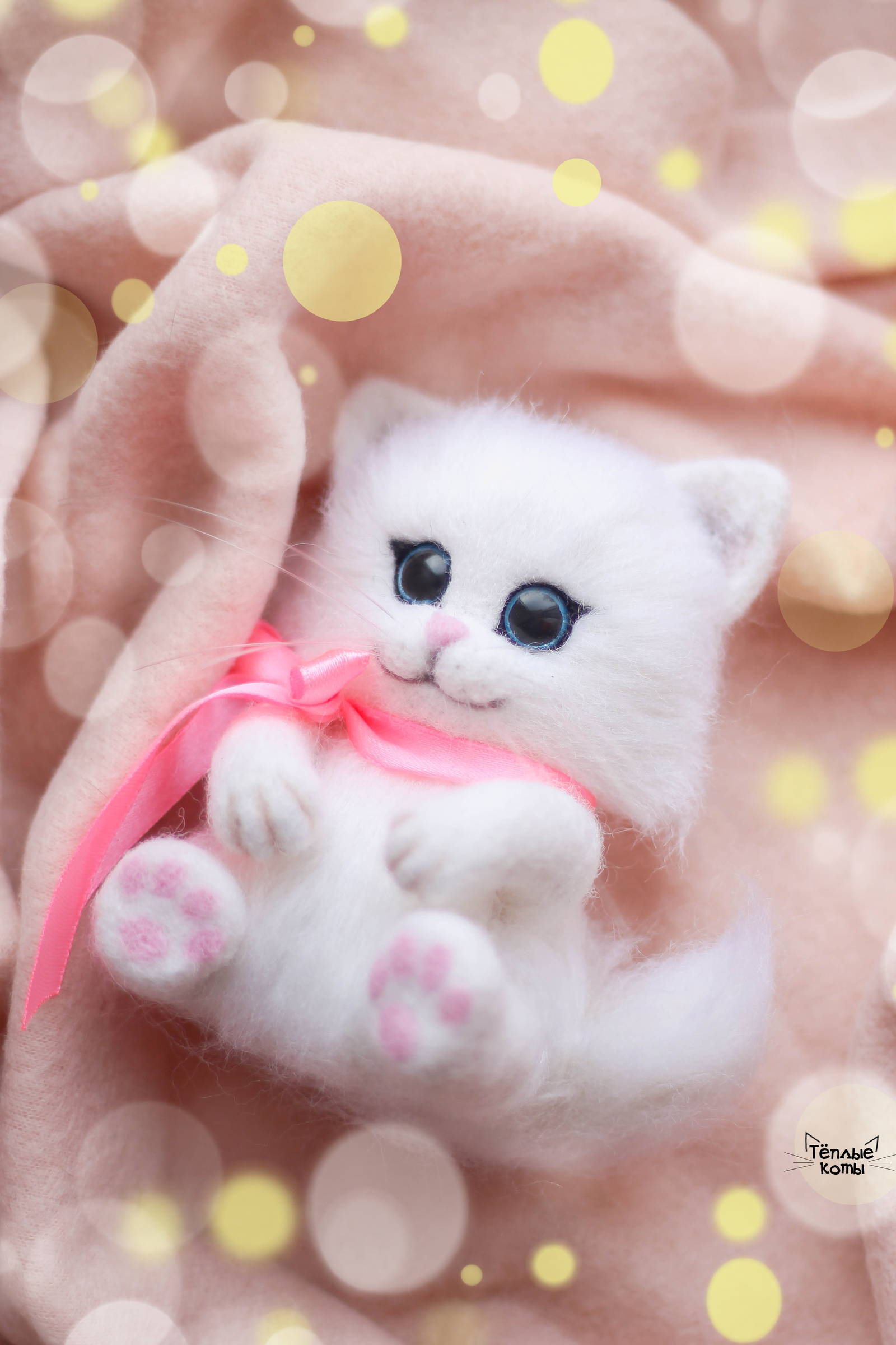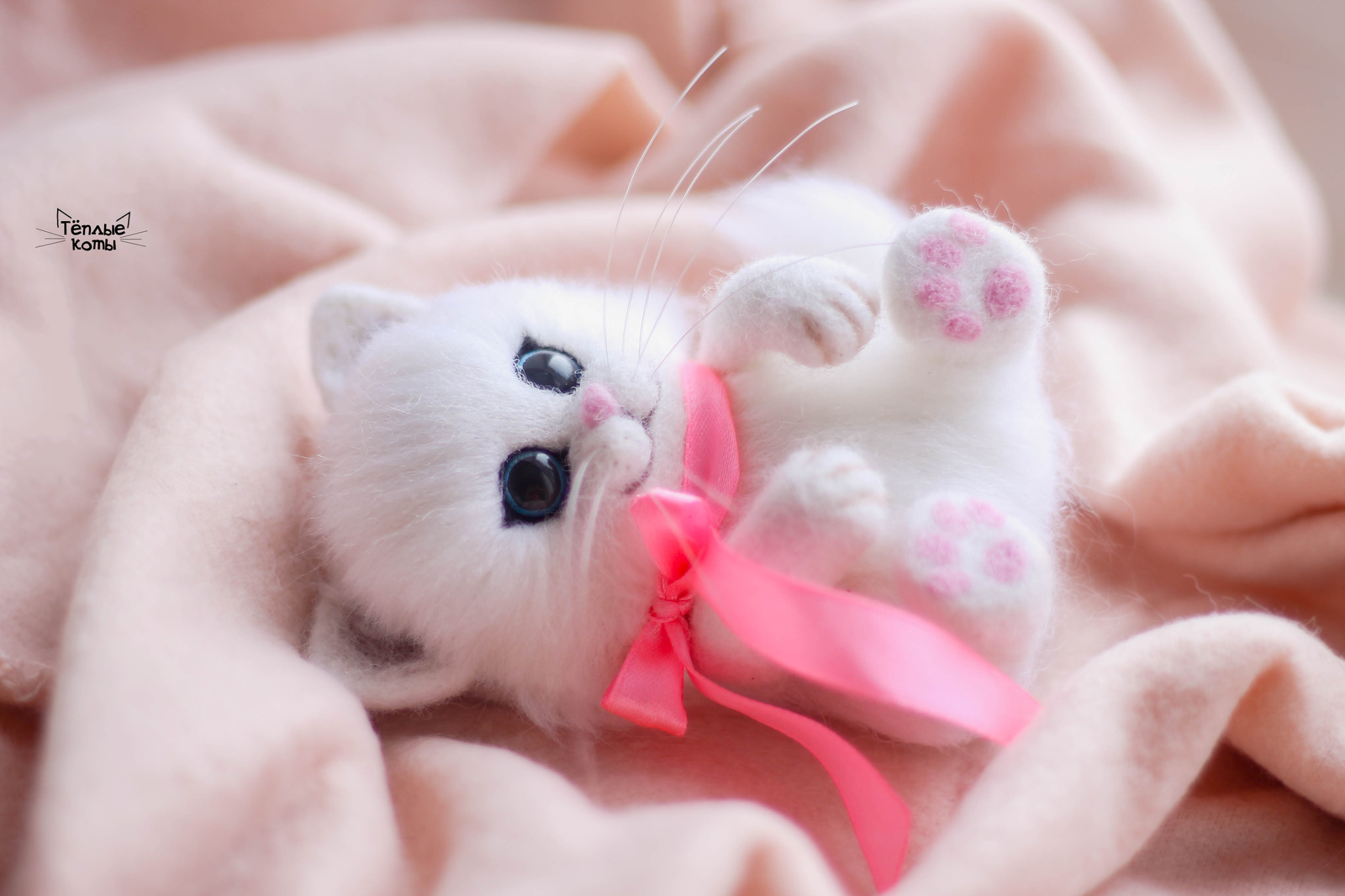 Всем привет! Расскажу немного о процессе. В работе над этой кошечкой было использовано два вида шерсти: кардочёс и гребенная лента. Кардочёс в основе, а гребенная лента сверху, она приваливается отдельными прядями по всей поверхности игрушки, что-то вроде наращивания))) Хоть это и трудоёмко, зато результат этого стоит, получилась красивая длинная и пушистая шёрстка)