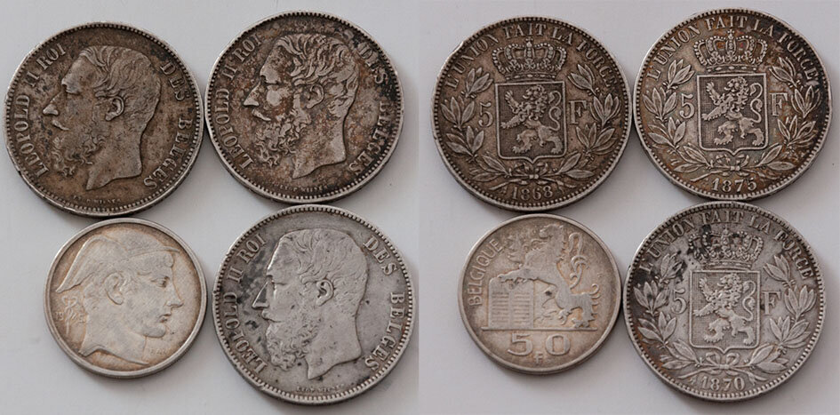Лотик из бельгийских монет. Три из одной эпохи, одна из другой.