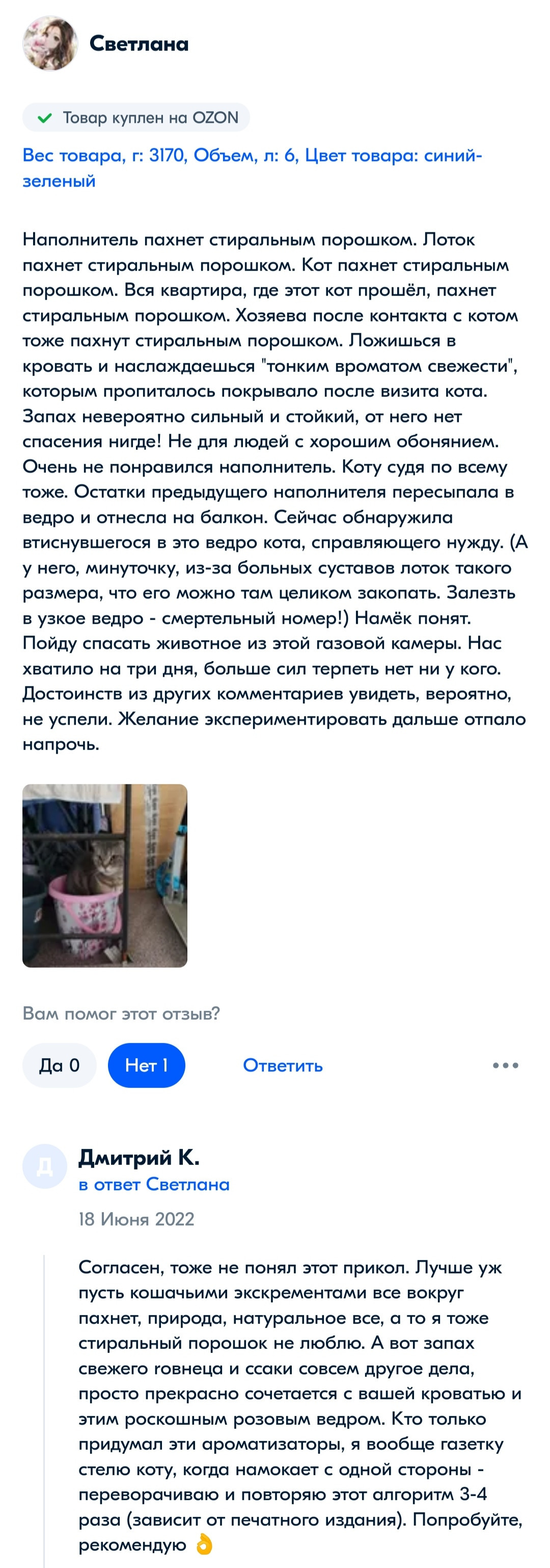 Из комментариев к наполнителю для кошачьего лотка