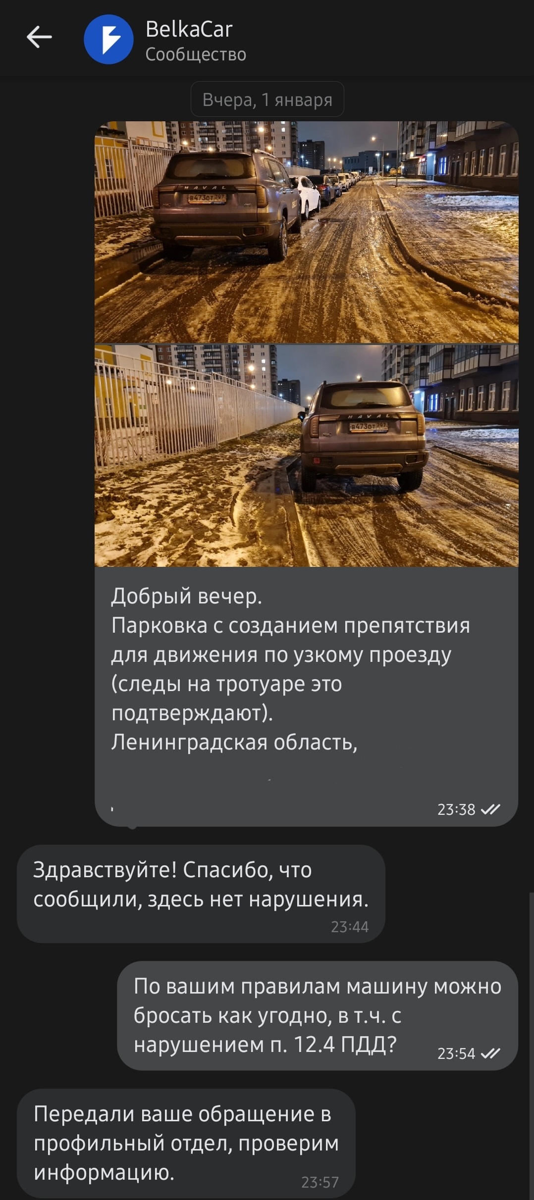 Еду такой по двору сейчас и упираюсь в торчащий в проезд каршеринг. Застройщик и так сделал узкие ходы в нашем муравейнике, а тут ещё всякие обмудки раскорячиваются. Преодолел его с заездом на поребрик бордюр, но осадочек остался. Свербило, поэтому с предложением донести мысль, что парковаться надо аккуратнее я вышел в интернет и настучал в поддержку @BelkaCarOfficial.