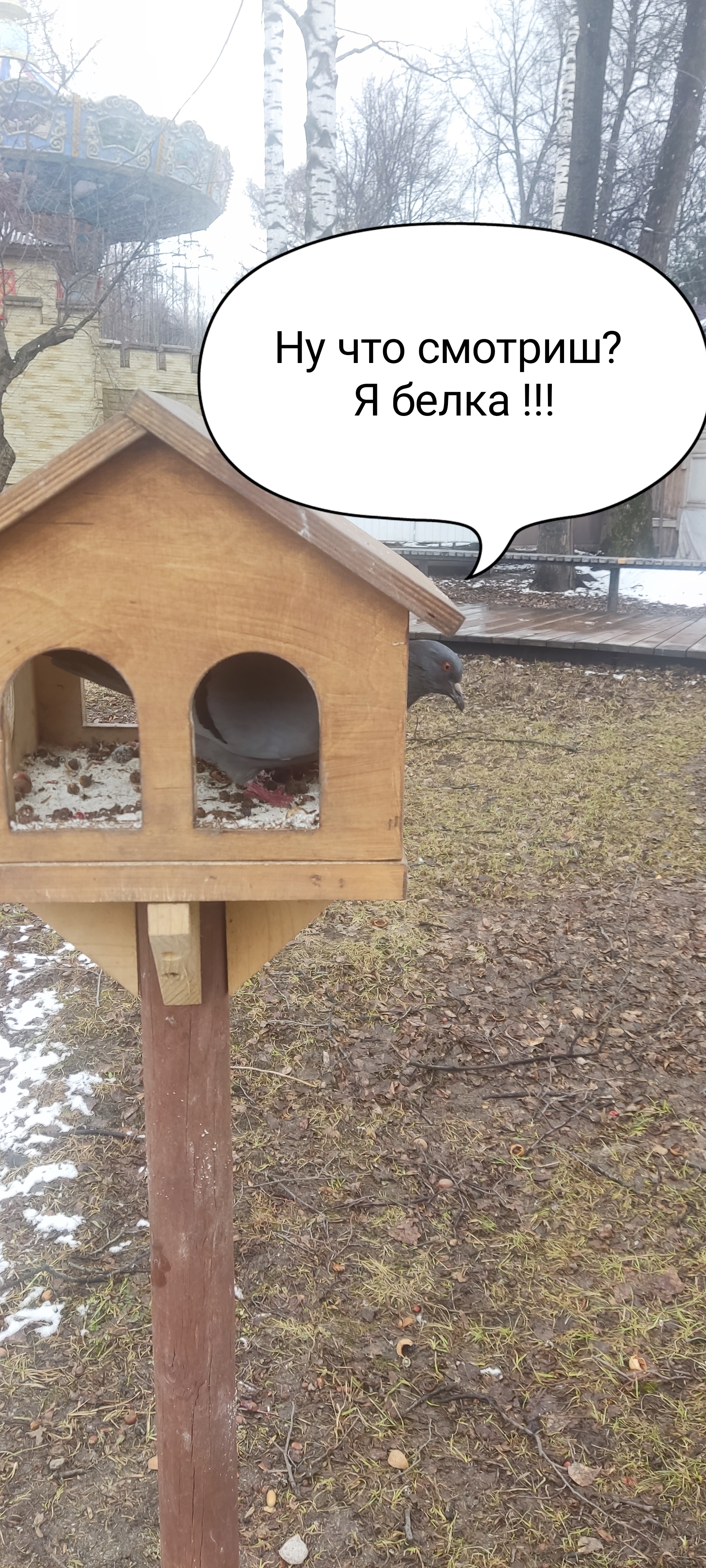 1 STDroid Белки такие белки 11 месяцев назад Дано, парк в центре города, стоят специальные кормушки для белок, недалеко автоматы с орехами (продажа естественно). Иду сегодня мимо и вижу 🤣 Специально не сделаны жордочки, что бы сложнее голубям и чайкам залезть было, но их не остановить! [моё] Птицы Кормушка Белка Путаница Длиннопост Ещё 0