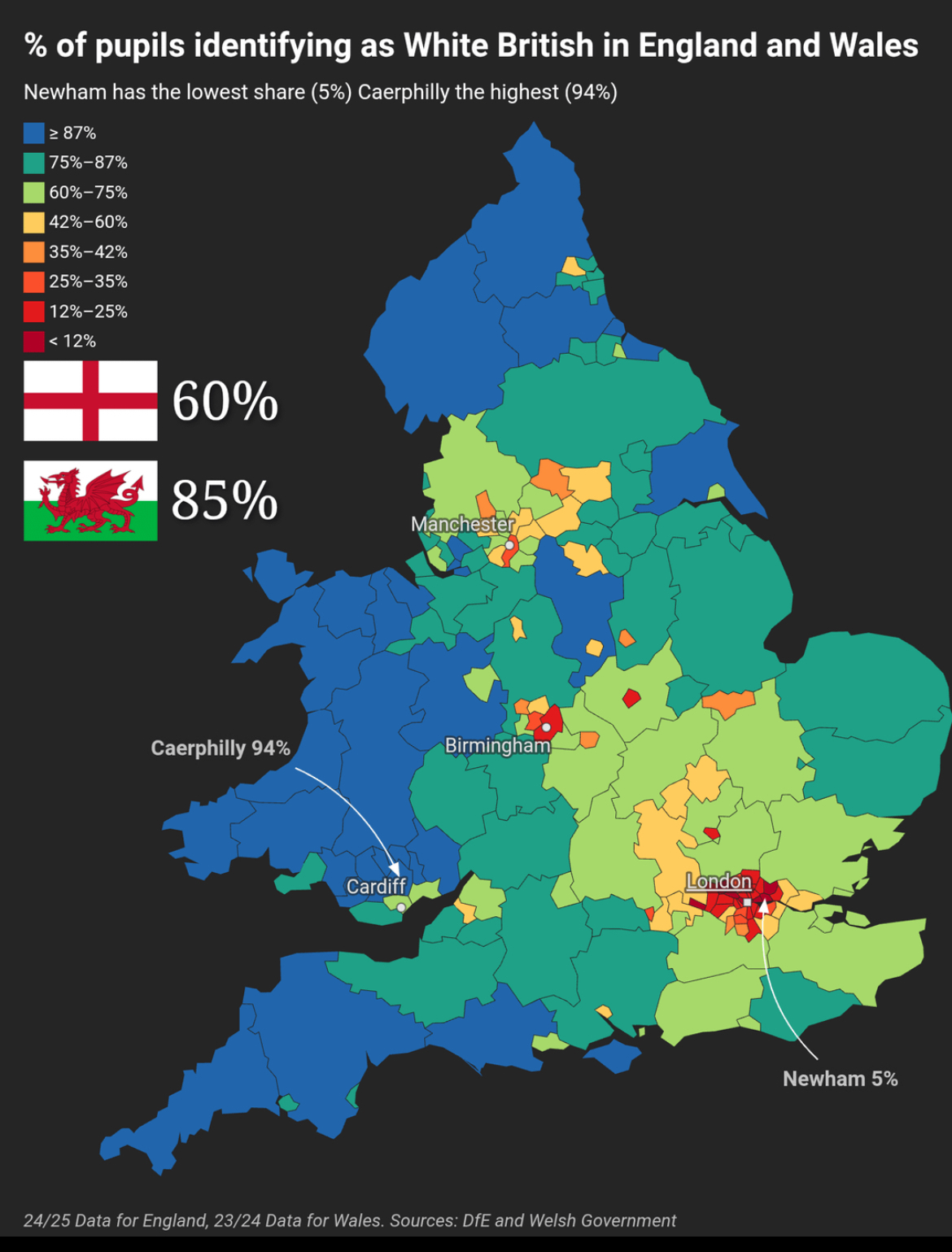 % учеников в школах, которых можно идентифицировать как Белых Британцев.