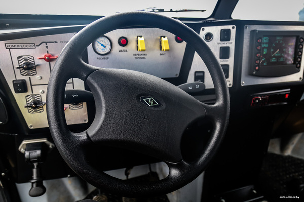 Машина оснащена шинами низкого давления. В зависимости от грунта, по которому она передвигается, давление в шинах может быть отрегулировано прямо на ходу. Необходимая системная информация отображается на ЖК-дисплее в кабине.