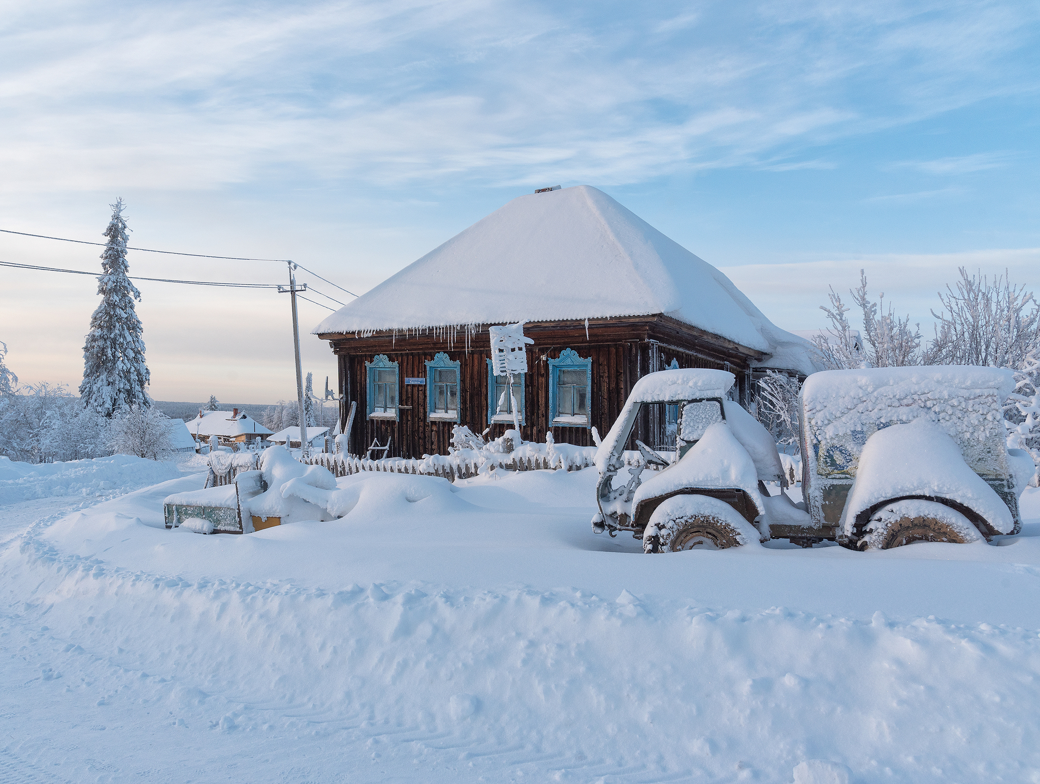 Белоснежная зима в деревне