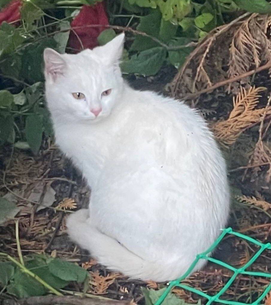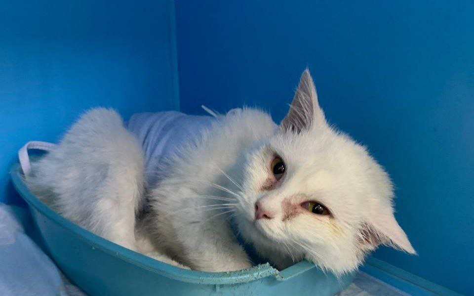 С начала лета их домом стала местная мусорка. Кошки выживали как могли. Волонтерам удалось отловить и пристроить всё семейство. Оставалась только эта белая малышка — самая осторожная, самая недоверчивая. Близились морозы, и мы понимали: нежной, домашней когда-то кошке зиму на улице не пережить.