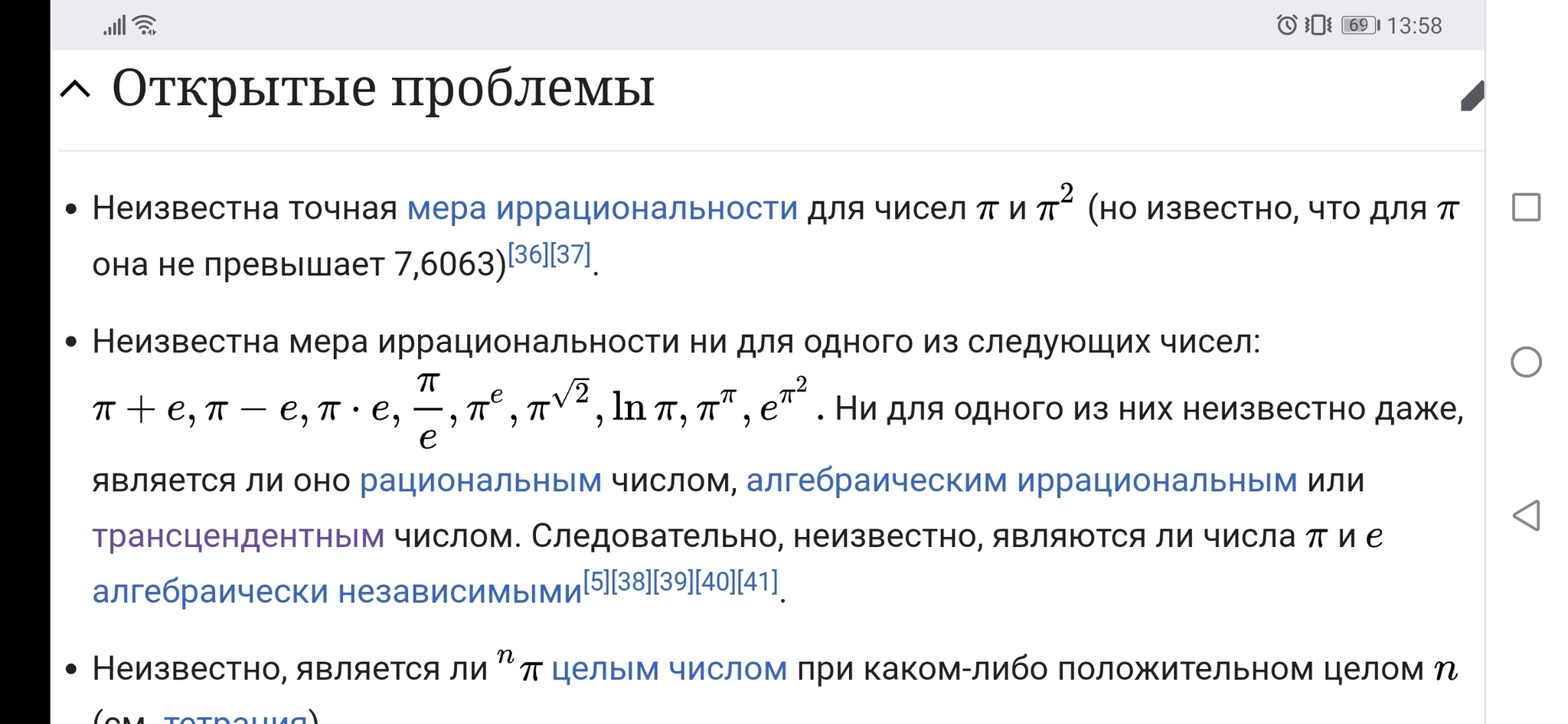 С трансцендентными числами связана одна из 23 математических проблем (7-ая по счету), сформулированных великим Давидом Гильбертом (который, кстати, жил и творил на территории современной России):