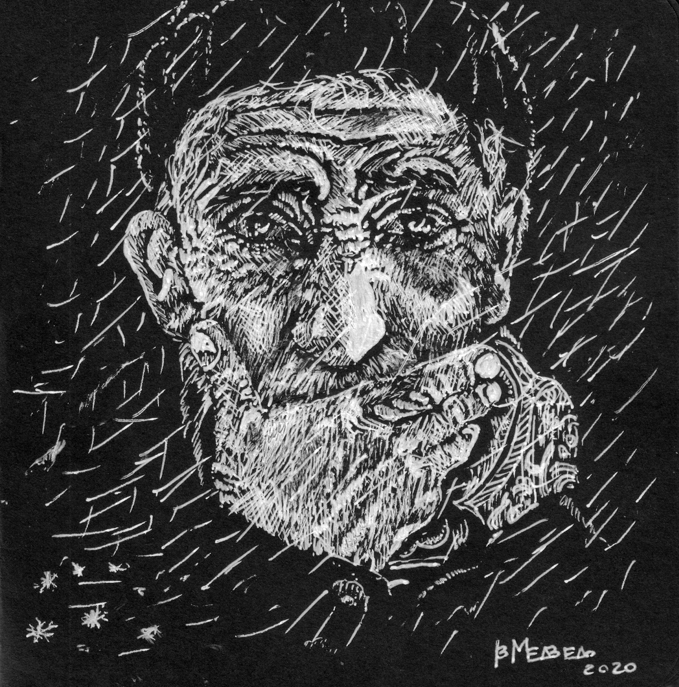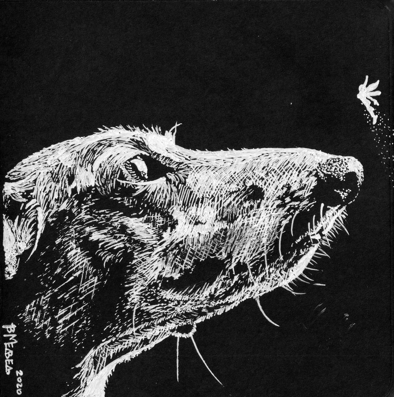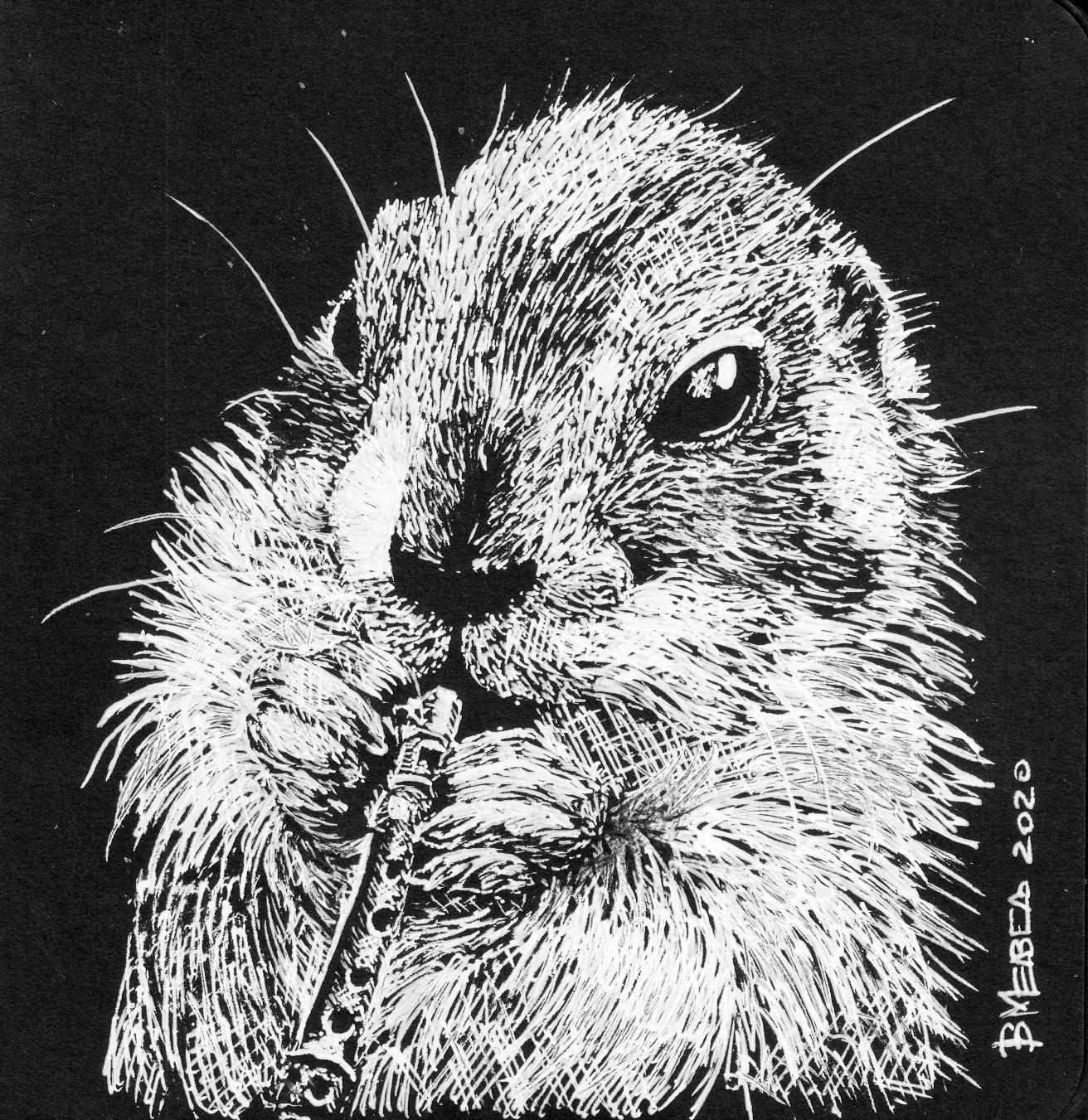 Продолжаю аматорски исследовать способы калякать белой гелевой ручкой по черному картону в блокнотике 12х12 см.