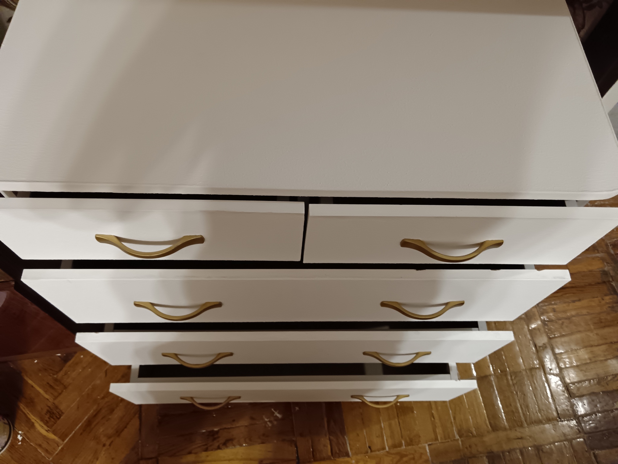 Наконец-то завершил покраску белого комода. Теперь он по-настоящему белый.