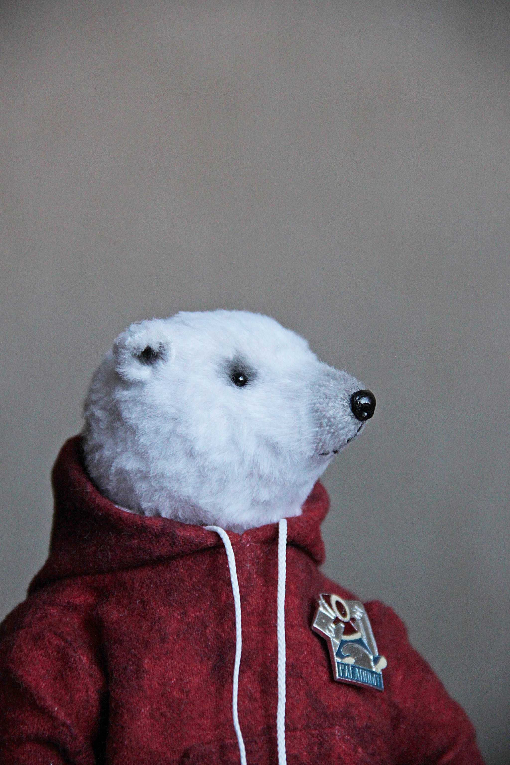 Шкурка из итальянской вискозы, внутри опилки, металлический гранулят. Толстовка из американской фланели, конечно же снимается. Носик самолепный.