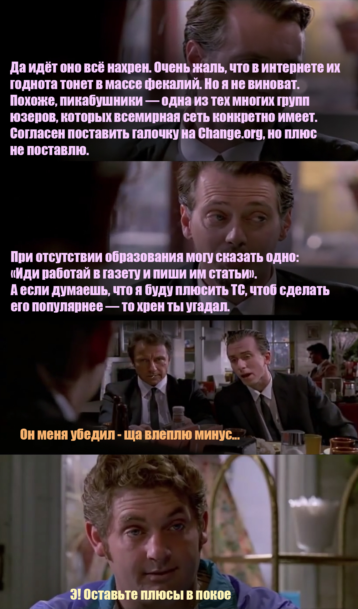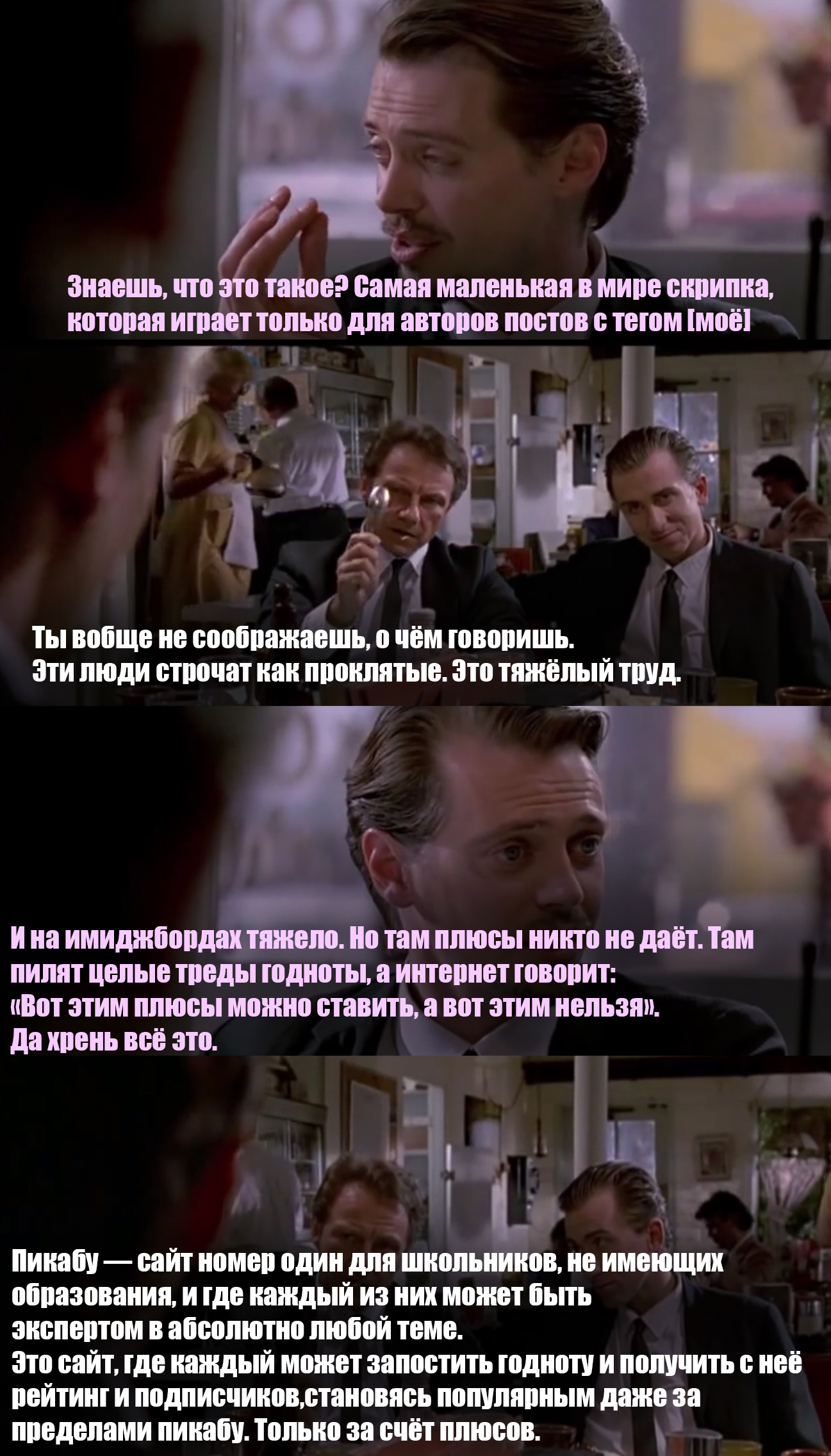 для тех, кто не в курсе - по мотивам сцены из фильма "Бешеные Псы" (осторожно, мат https://www.youtube.com/watch?v=oRtKPTI2Ayo)