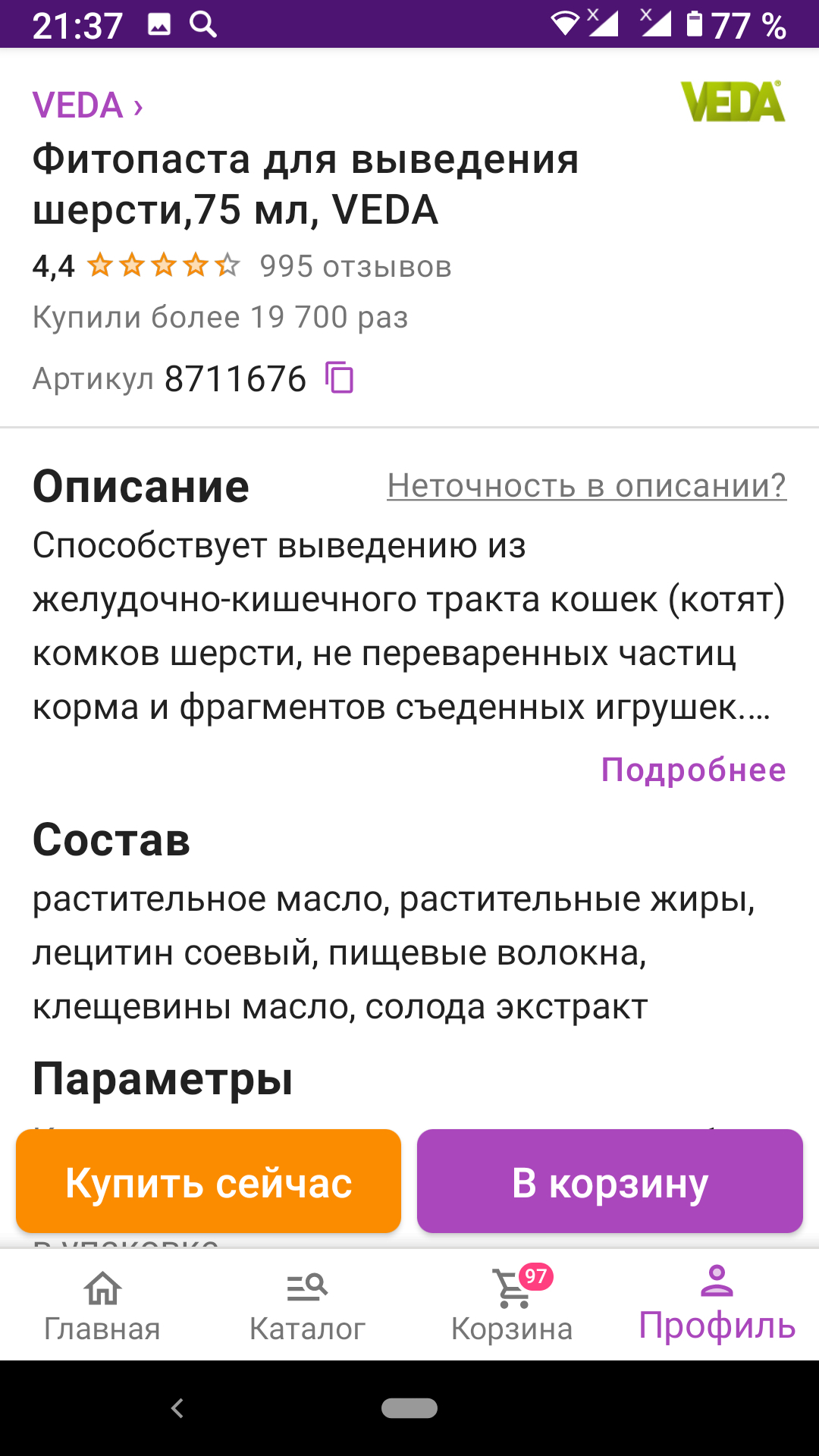 Была давно попытка накормить его такой пастой, есть не стал. Коту 10 лет, лохматый. Стол у него состоит из сухого и влажного Cat CHOW для стерилизованных котов+ сено. Спасибо.