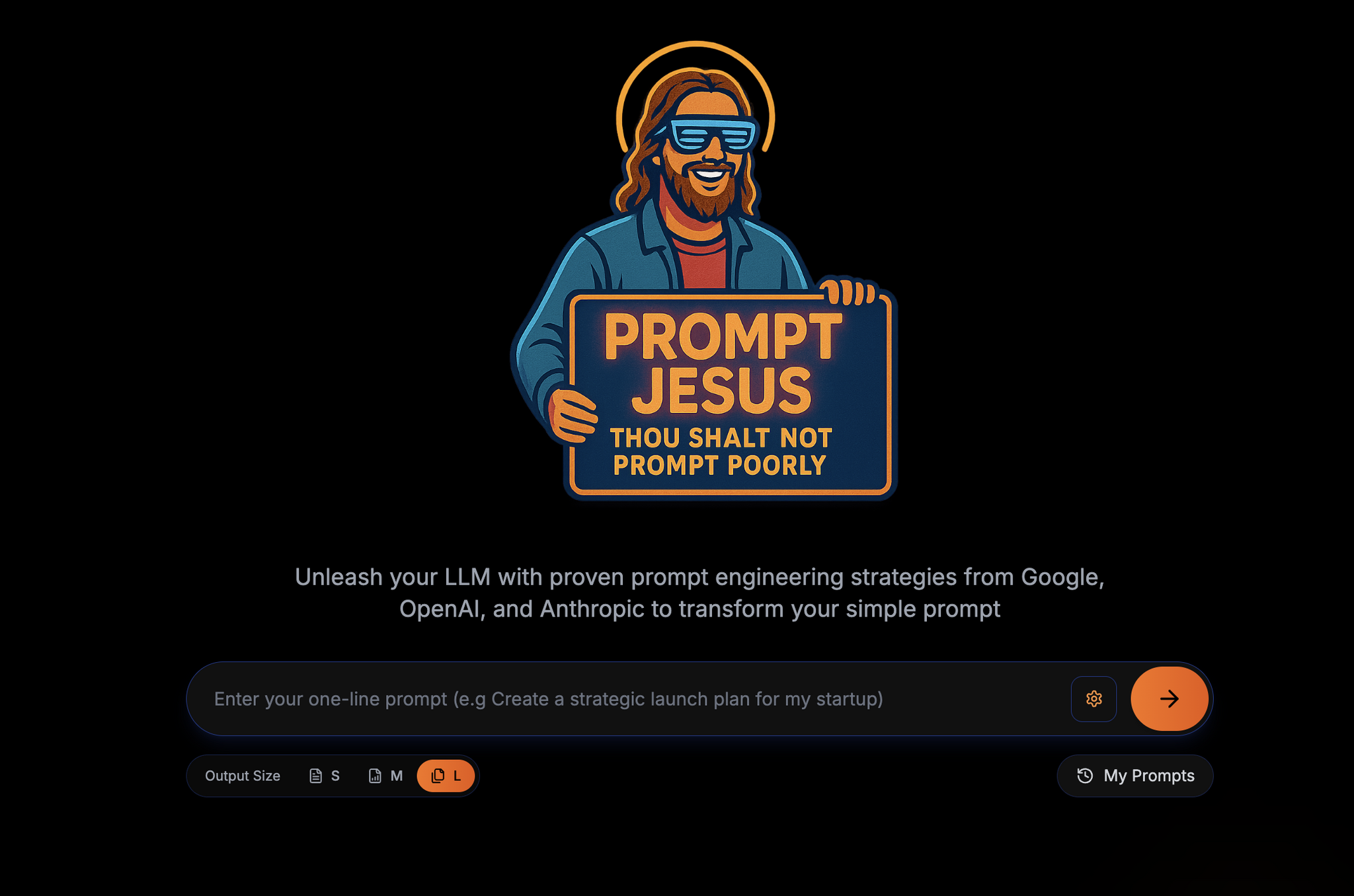 Prompt Jesus вобрал в себя лучшие практики составления промптов от Google, OpenAI и Anthropic чтобы улучшить вашу подсказку.