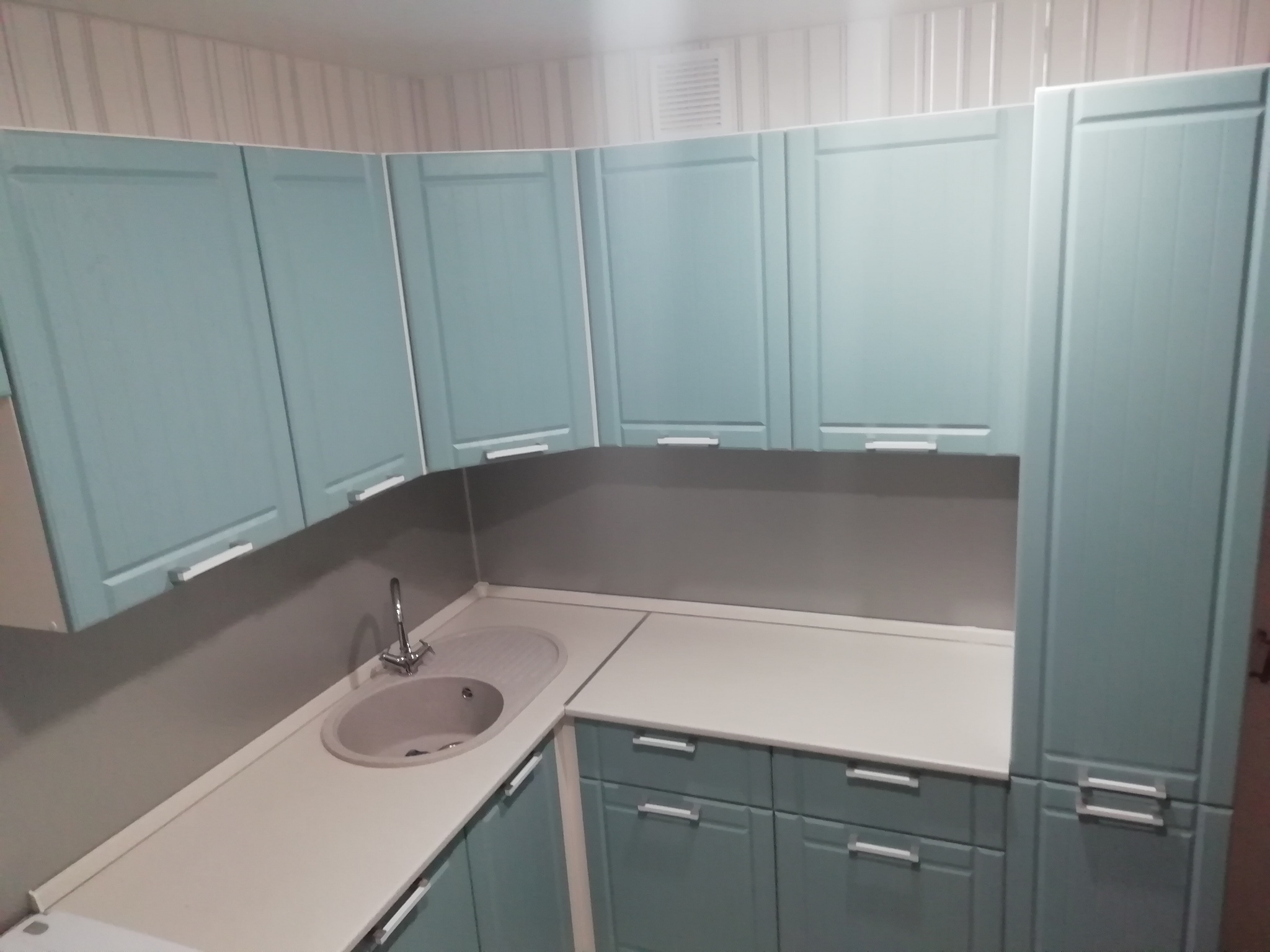 Закончили восьмой бесплатный ремонт, на этот раз решили снова придти к Галине Александровне, труженице тыла. В прошлый раз мы делали ремонт в комнате Бесплатный ремонт. Труженик тыла сейчас преобразили кухню. Старый кухонный гарнитур, доставшийся от соседей, выбросили. Положили ламинат, натянули потолки, поменяли обои. Новые стол и стулья удачно вписались в интерьер. Сказать что человек был счастлив - ничего не сказать.