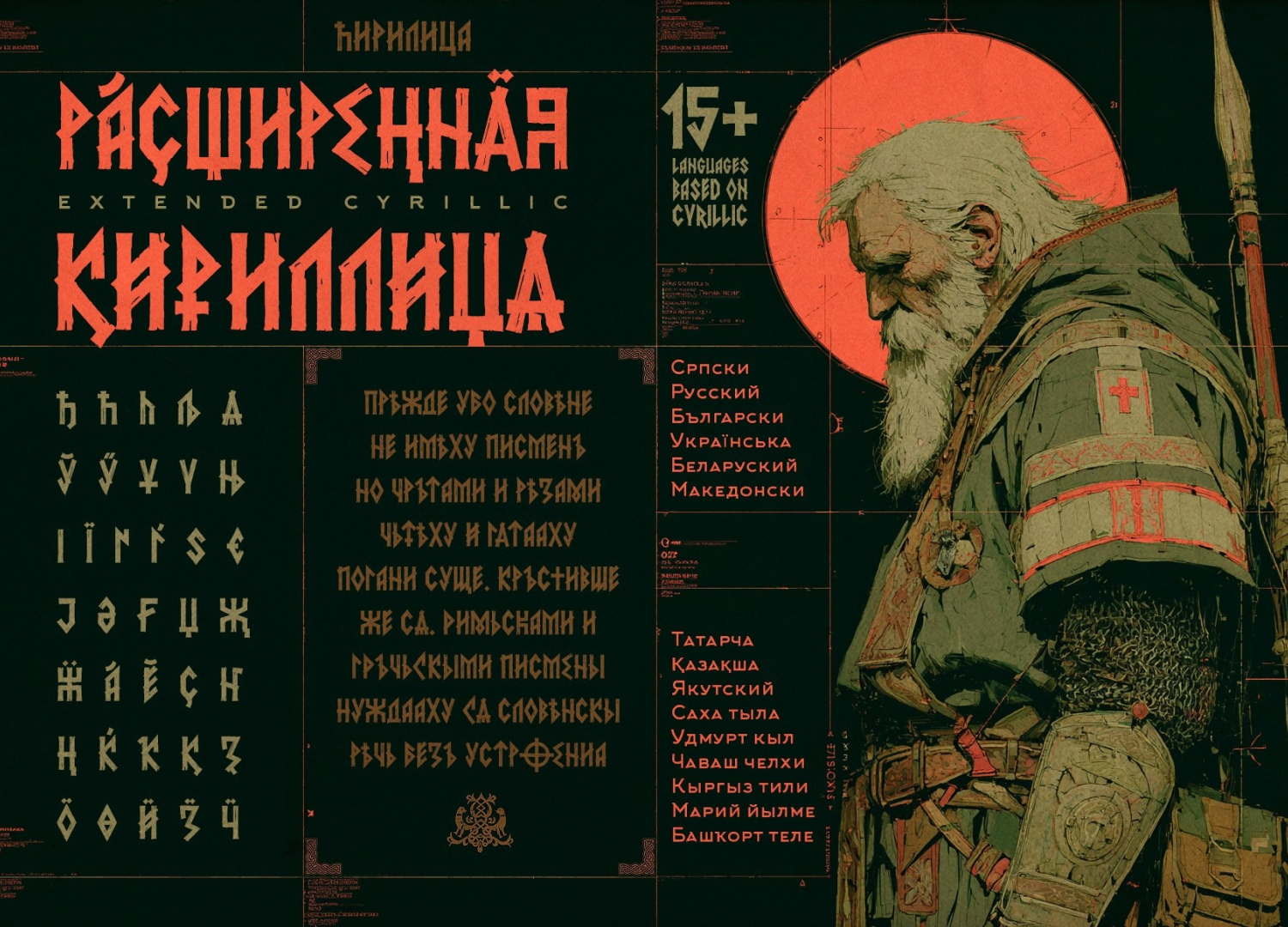 Бесплатный шрифт в древнеславянском стиле. Буквы угловатые, напоминают руны, сразу веет стариной и чем-то суровым. Есть кириллица и латиница.Отлично зайдёт для исторических проектов, игр, фолк-тематики, мерча с языческой эстетикой или обложек для металла. Презентация сохранена от автора) Я добавил только 2 слайд для наглядности