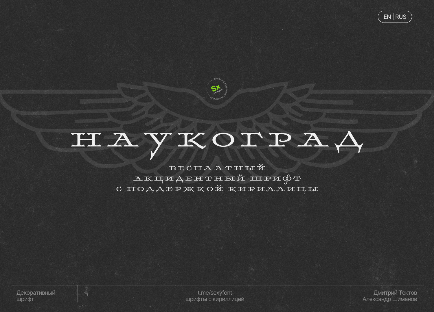 Имена авторов уже означает, что шрифт сделан максимально качественно) Осталось подобрать нужные тематики для использования)Совместный проект: Tektov Dmitry и Alexander Shimanov