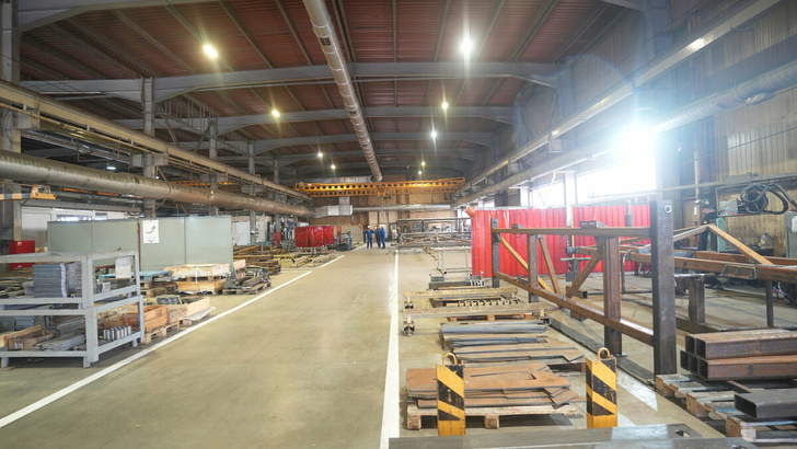 Но мы приехали посмотреть именно на внедрение новых практик, позволяющих повысить производительность труда. Впрочем, «Бережливое производство» не так-то просто увидеть воочию, потому, что это прежде всего организация процессов, а не какое-то новое оборудование. Например, на рабочей площадке детали после процесса плазменной резки хранились на поддонах без учета и систематизации. Сварщику с последующего процесса требовалось значительное время для поиска деталей (от 210 минут). Внедрение адресного хранения на территории производственной площадки, позволило сократить время на поиск машинокомплекта (заготовок для сварки) что в свою очередь позволило увеличить выработку в потоке на 15%.
