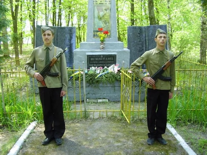 Почетный караул в День Победы у мемориала в селе Смяч.