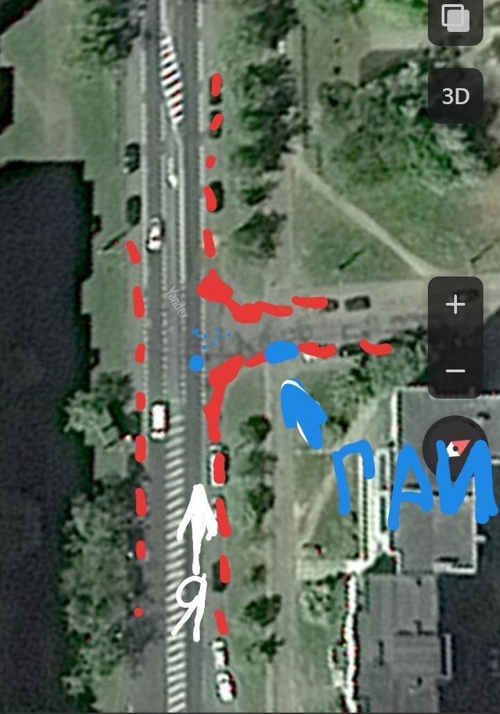 фото для примера: синенький это гаевый который выпрыгнул из-за машин, а красным обозначены припаркованные машины их там было почти в два ряда)
