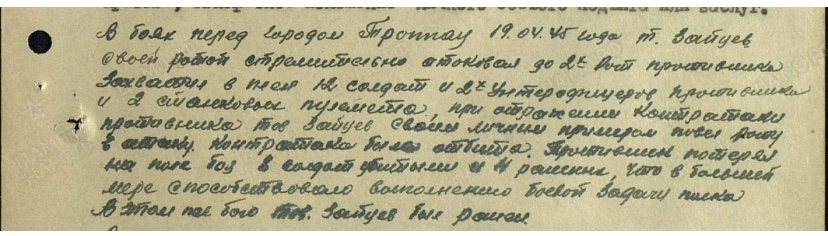 Мой прадед, Зайцев Иван Васильевич 14.09.1925 года рождения. Дошел до Польшы, где его ранило, и победу он встретил в лазарете. Отметился героическими подвигами, за что получил орден красной звезды и орден Александра Невского. Очень горжусь им. Спасибо за победу и за мирное небо над головой
