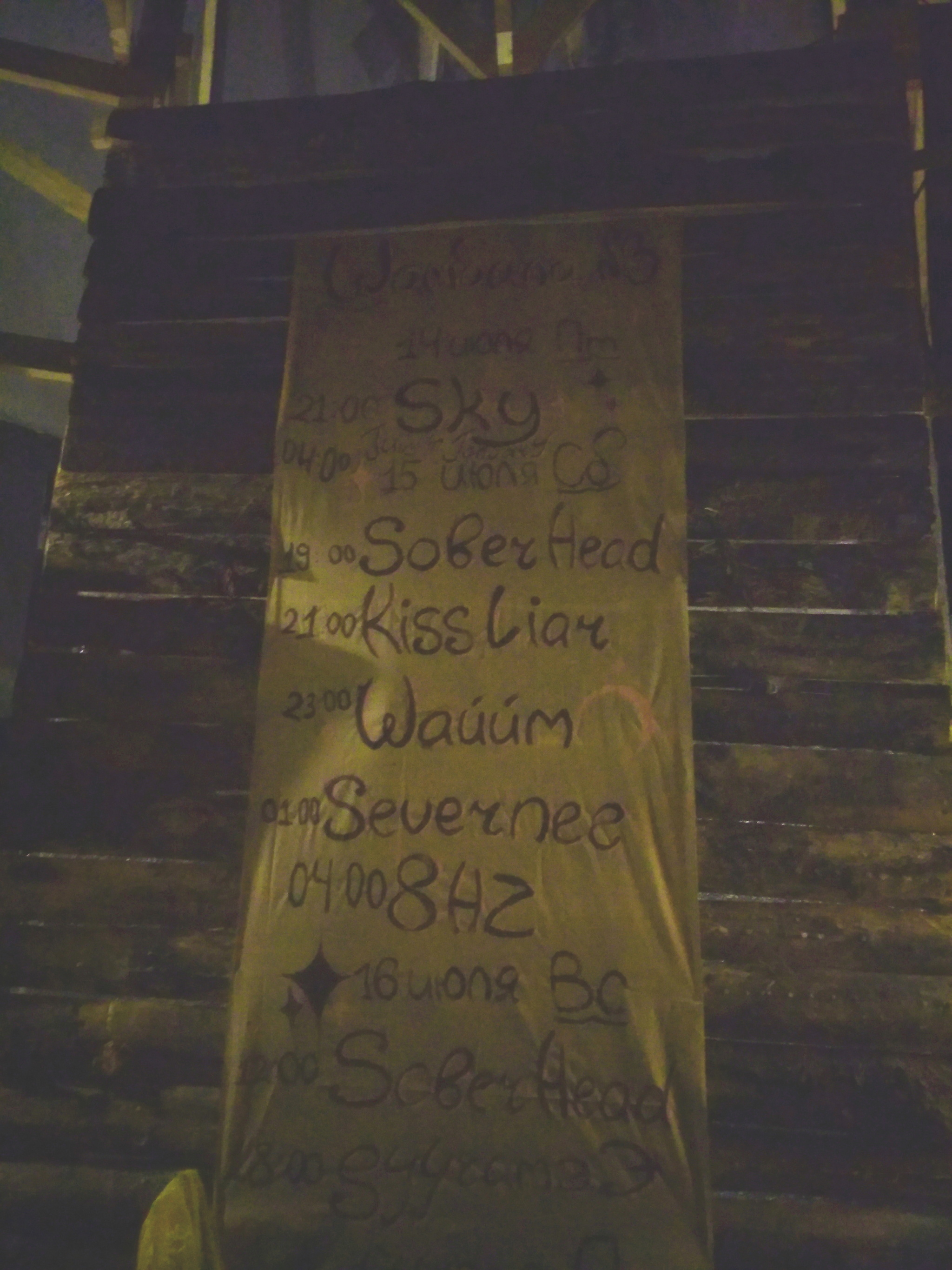 В программе музыкальные сеты от Шаййм, дуучимээ, группы ил, severnee, Sky, KissLiar, Sober head, July in January, а в остальное время — джемы с приглашенными музыкантами.