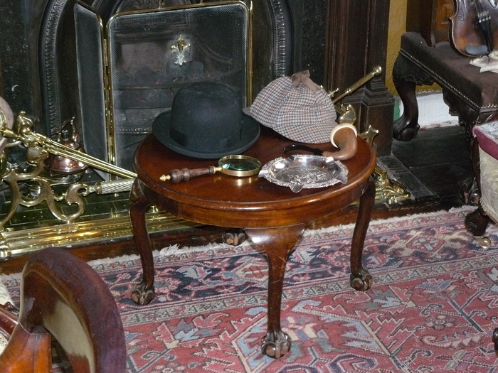 Интерьер дома в точности соответствует описаниям, присутствующим в произведениях Артура Конан-Дойля о Шерлоке Холмсе, и отличается доскональностью проработки. Здесь можно увидеть «вживую» многие предметы, знакомые читателям по рассказам о Шерлоке Холмсе — скрипку Холмса, шляпу, охотничий хлыст, турецкую туфлю с табаком, письма, приколотые перочинным ножом к каминной полке, оборудование для химических опытов, армейский револьвер Ватсона и т.п. На стене гостиной под стеклом красуется монограмма королевы Виктории «VR», которую Холмс «выстрелял» в рассказе «Обряд дома Месгрейвов».