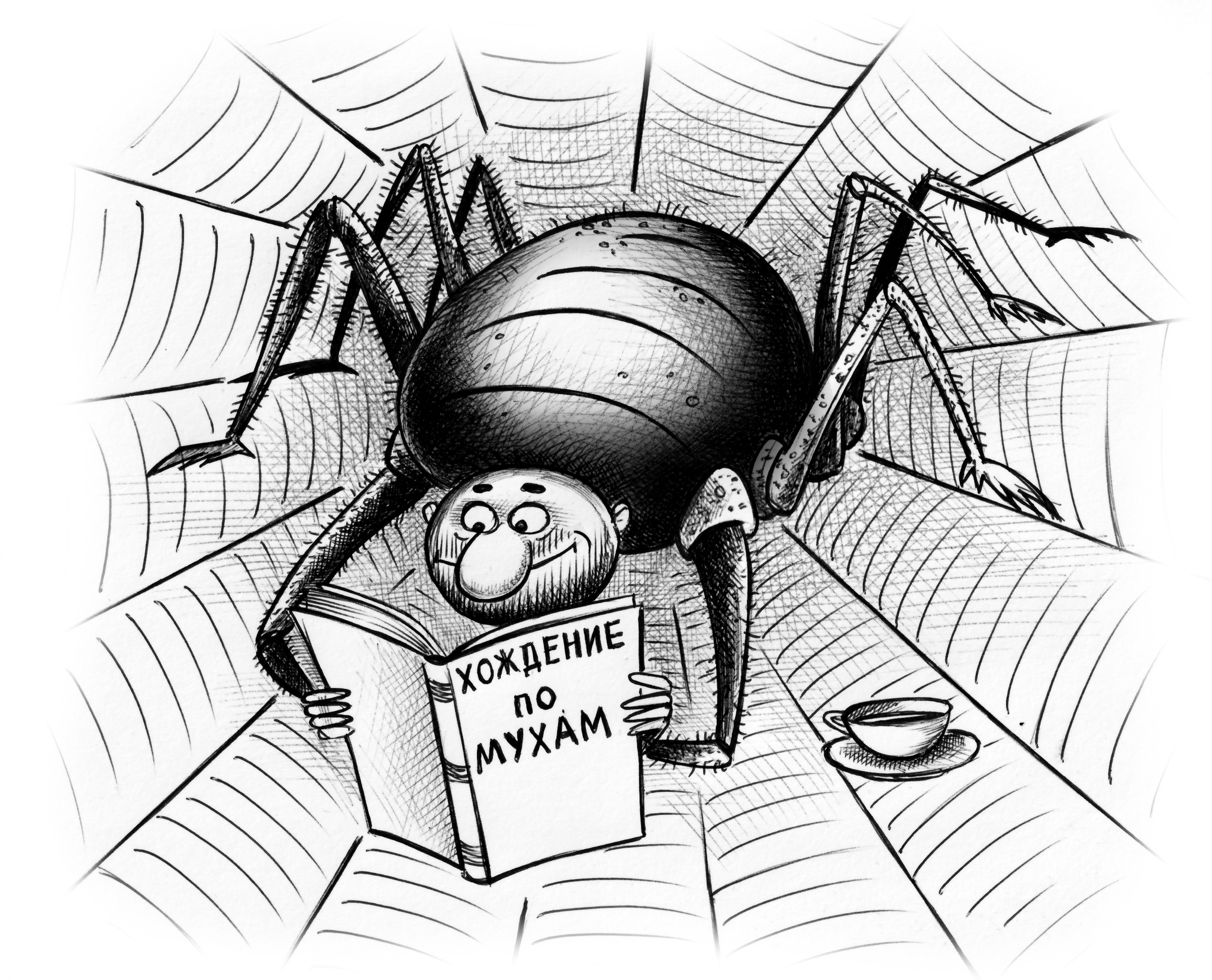 1665 SergeyKorsun Без названия 7 дней назад [моё] Сергей Корсун Карикатура Графика Рисунок ручкой Паук Книги Юмор Игра слов 166 22 5 2 1 Ещё 0