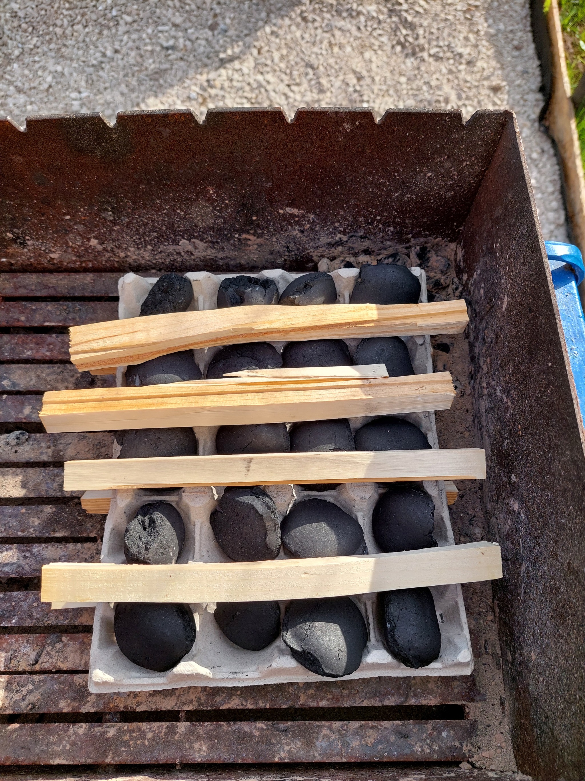 3. Уголь (у меня были брикеты, сложно разжечь даже с розжигом)