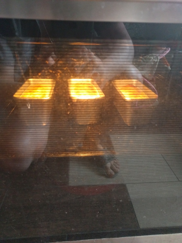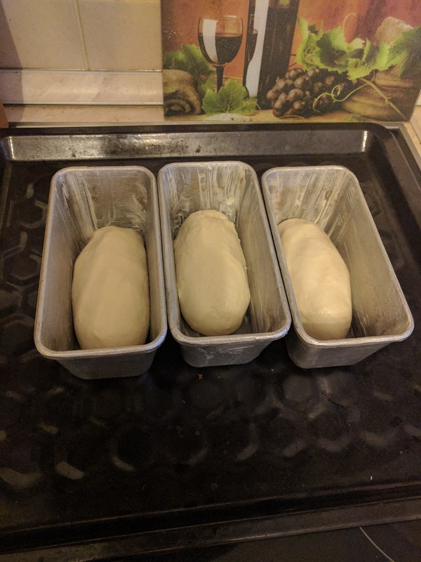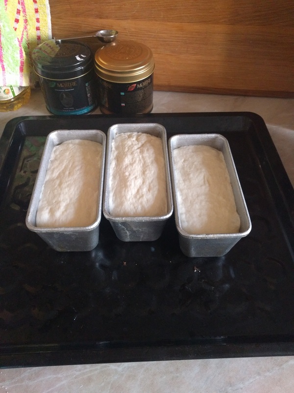 Формы готовы принять в себя тесто. Делим наш ком на 3 равные части с помощью рук и весов, придаем кускам форму колбасы, закладываем.