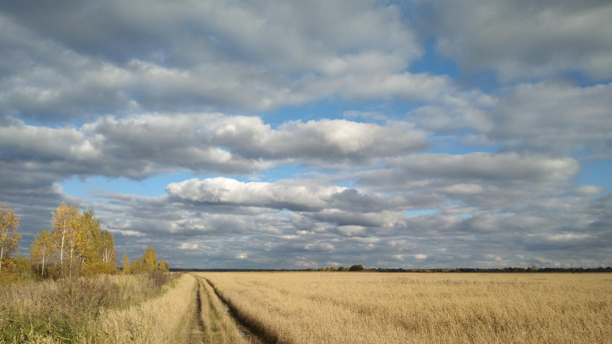 На улице около 15 градусов тепла, это начало октября; сейчас около 6 часов вечера, дует слабый теплый ветер, пахнет злаковыми запахами и немного прелой травой.