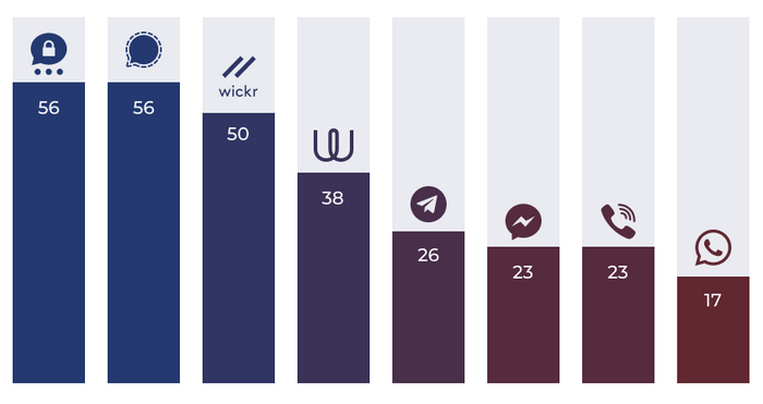 В рейтинге самых безопасных мессенджеров по версии Molfar Telegram занял только 5-е место, пропуская вперед Threema, Wickr, Signal и Wire. Кто-то из вас слышит эти названия впервые. Количество загрузок приложений варьируется от 1 до 10 миллионов, существенно уступая Телеграму в популярности.