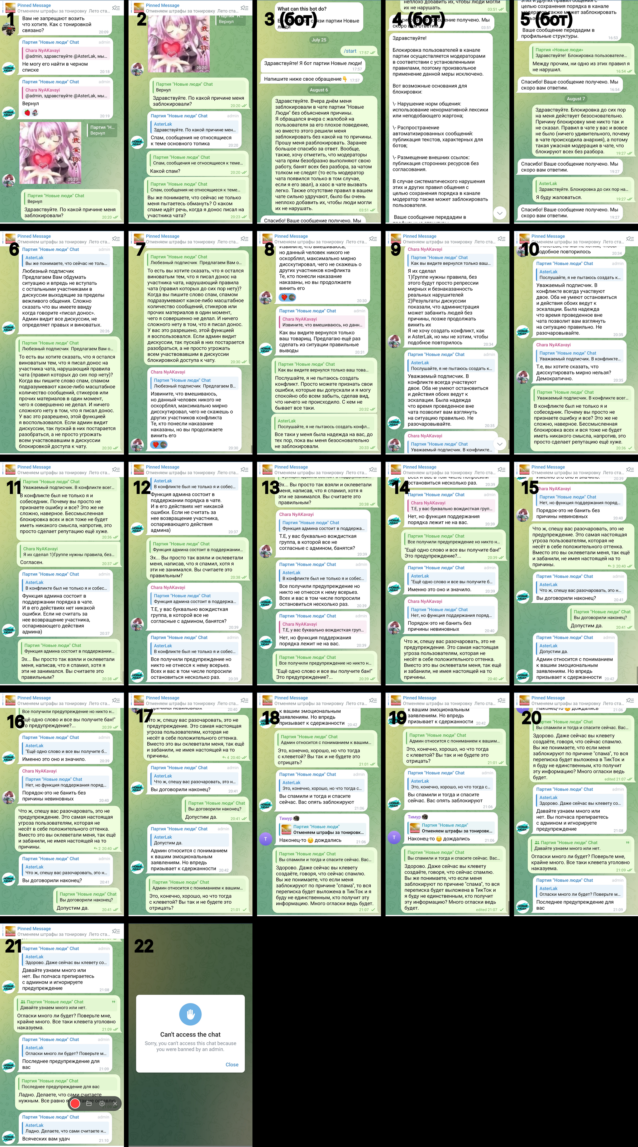 P. S. Во время первого бана обращался к боту ТГК партии "Новые Люди". Толку ноль оказалось (просто проигнорировали). Скриншоты приведены ниже (смотреть скриншоты также от низа к верху):