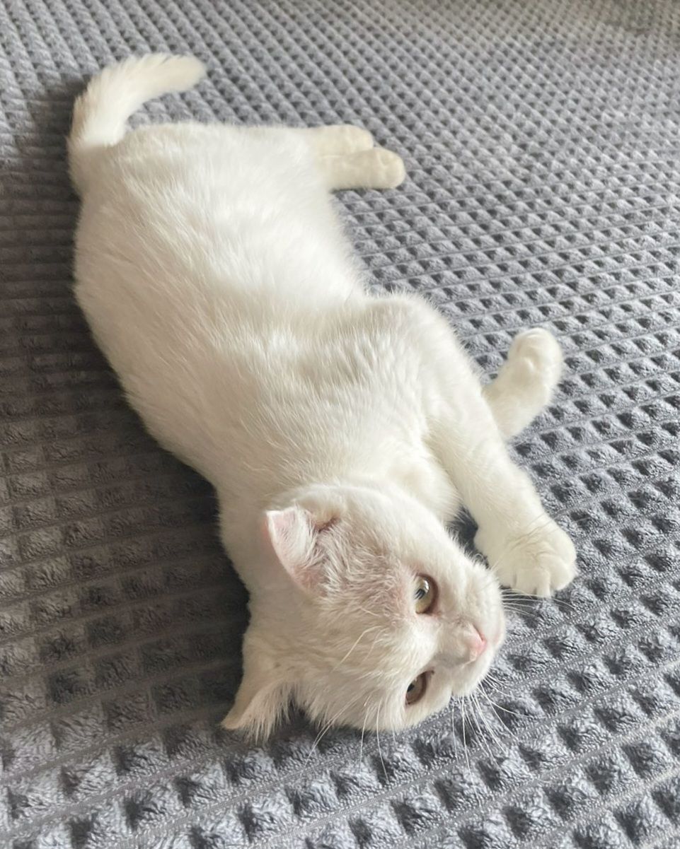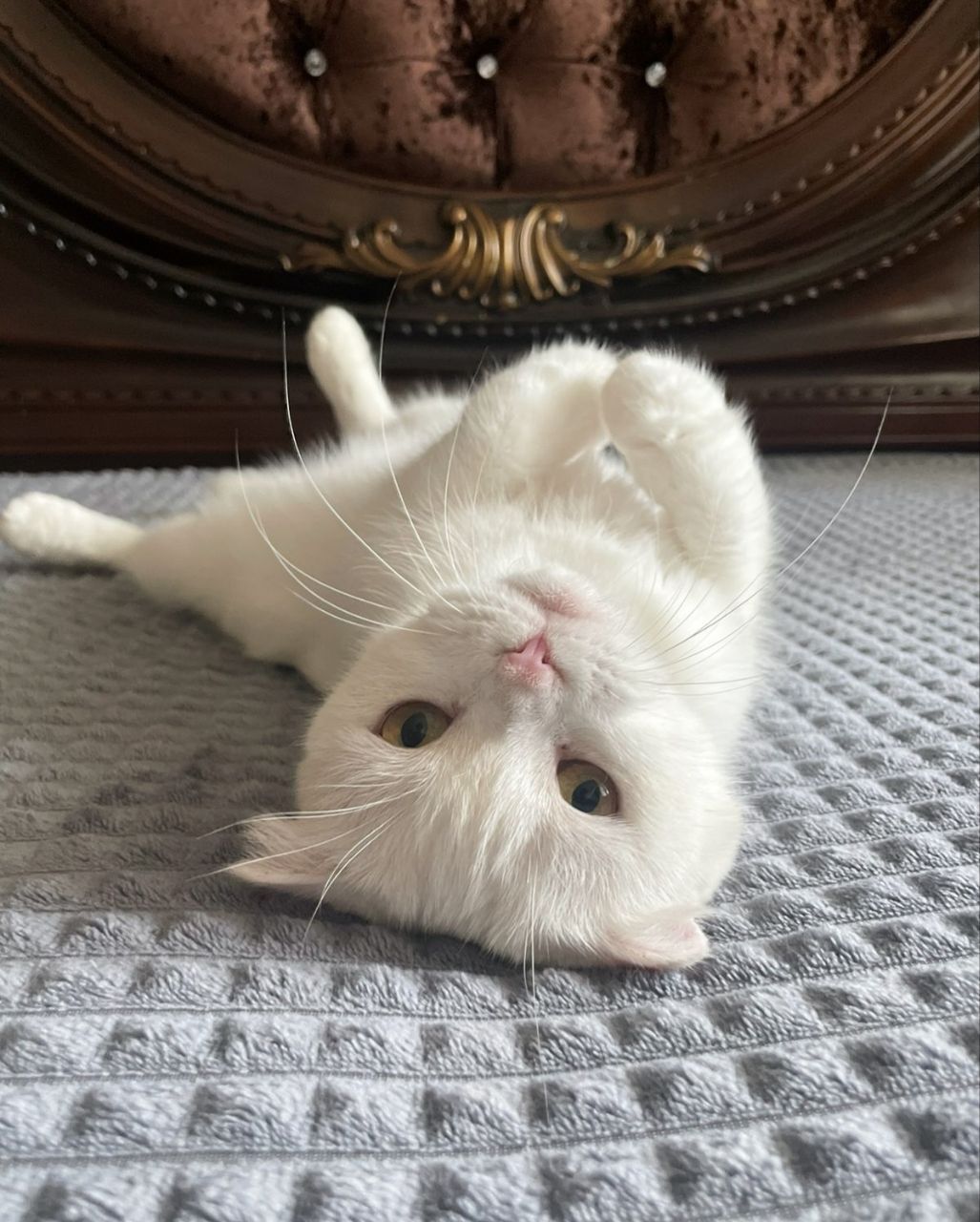 Сейчас Зимушка приходит в себя на передержке. Что известно о ней на данный момент: кошечка очень ласковая, контактная, любит людей и валяться пузиком кверху.
