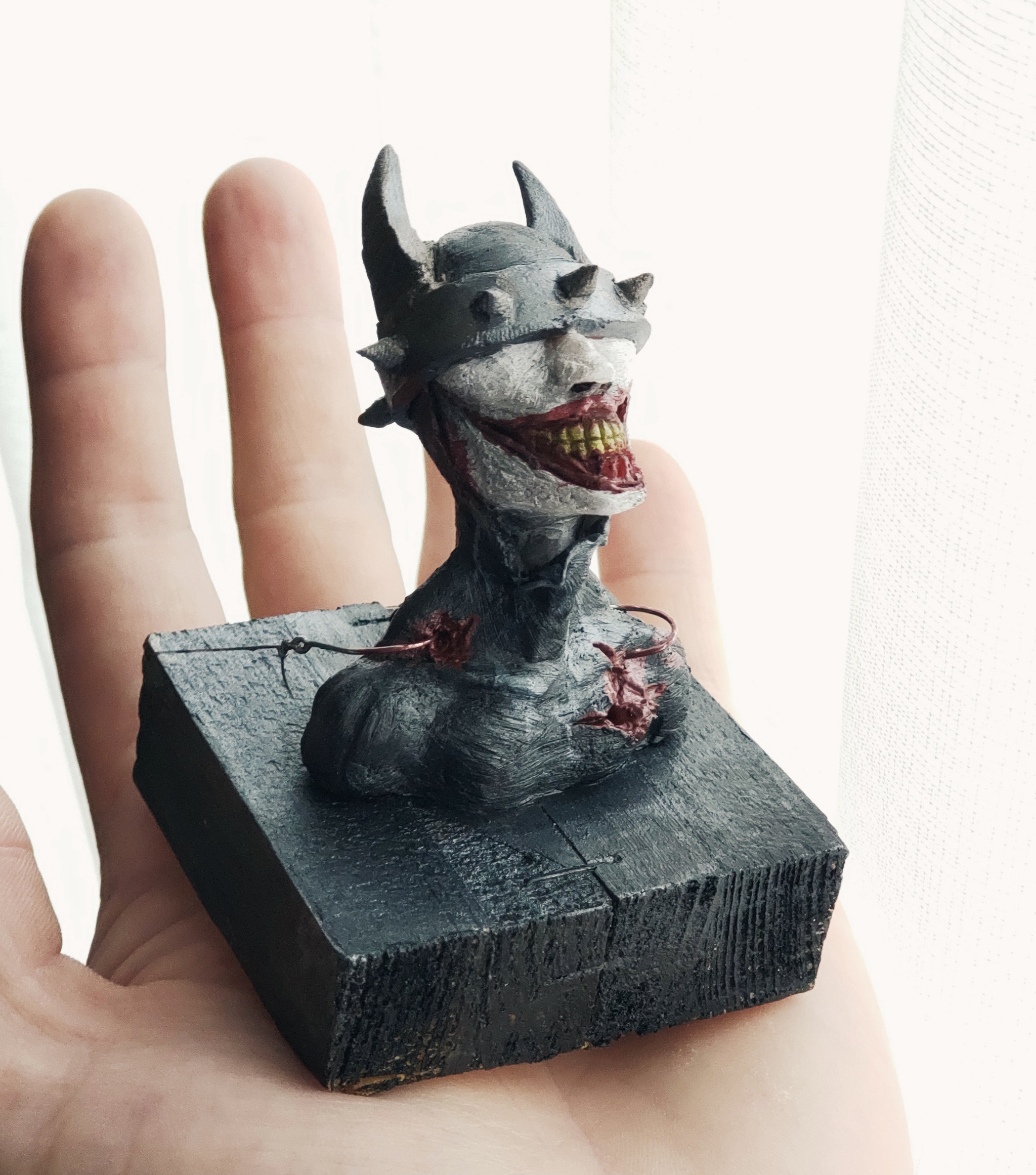 5 Kktus Полимерная глина Безумный Бэтмен, который встретил синобитов... 5 лет назад Длительное время не занимался лепкой, пытаюсь наверстать. 93 мм до кончиков ушей. Идею брал с pinterest. [моё] Полимерная глина Хобби Творчество Бэтмен Восставший из ада Джокер Длиннопост Ещё 0